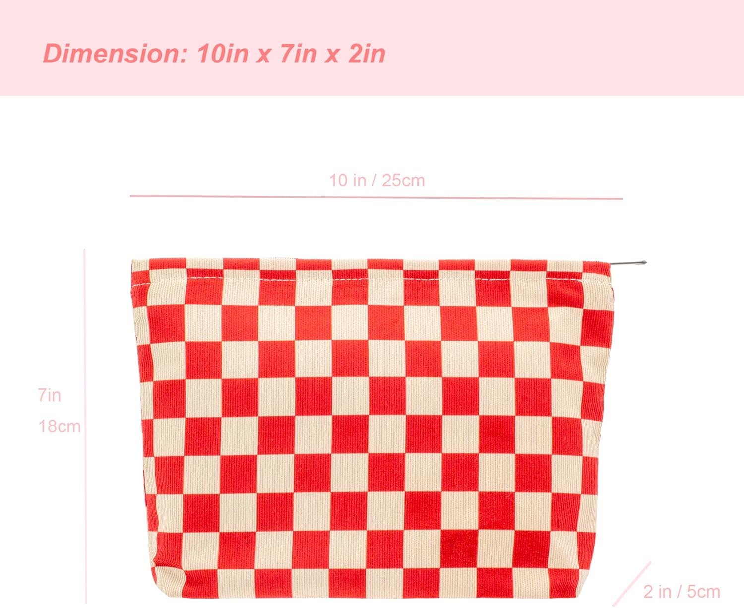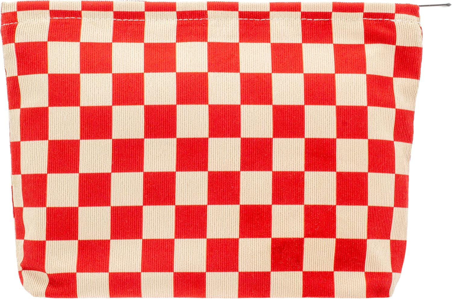 PAZIMIIK Makeup Bag Large Zipper Corduroy Make Up Pouch for Purse Travel Canvas Cosmetic Organizer for Women Brush Storage,Checkered Red