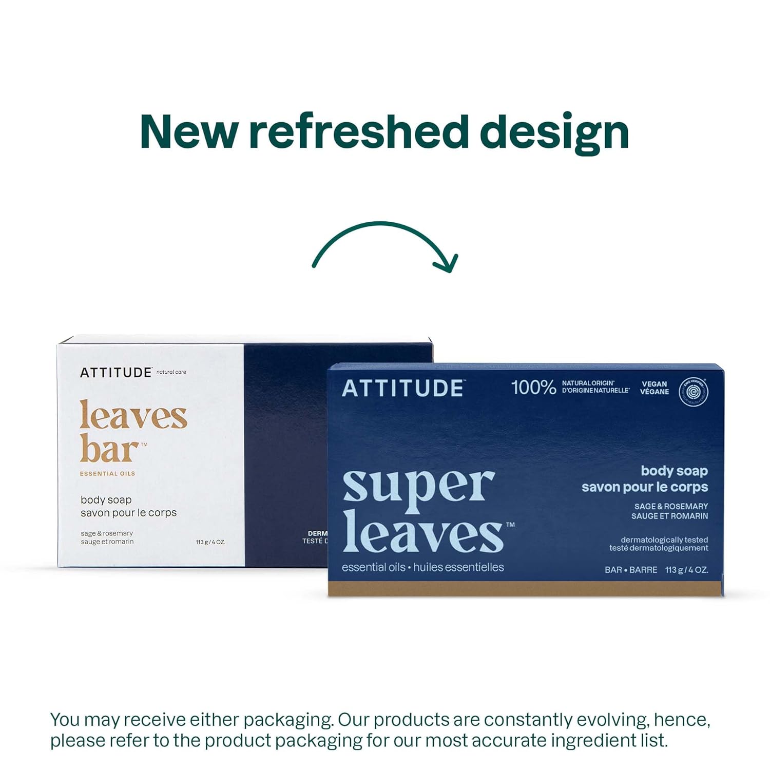 ATTITUDE Body Soap Bar, Natural Origin,Protects and Softens Dry Skin, Coconut & Olive Oils, For Men and Women, EWG verified & Vegan, Sage & Rosemary, 4 Oz
