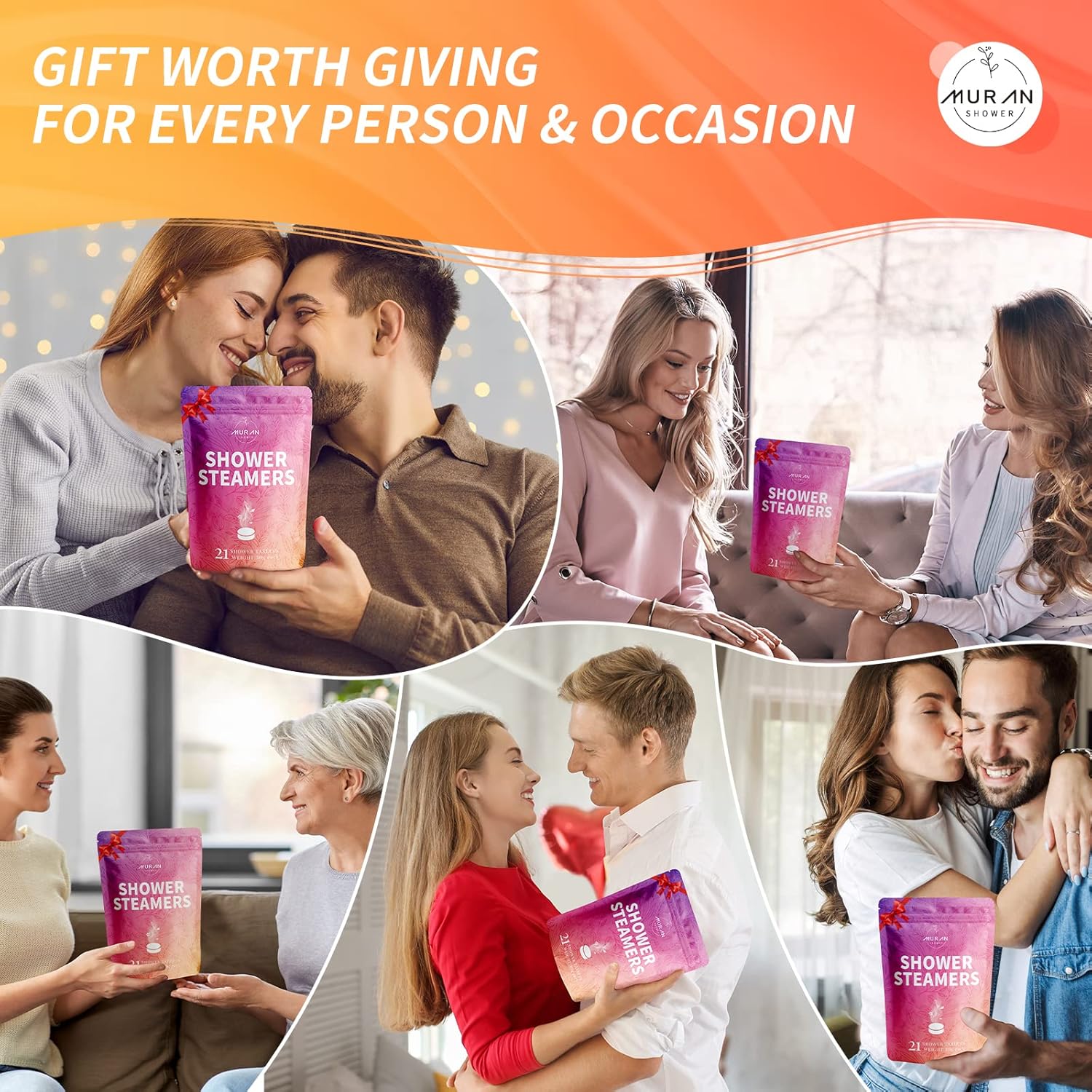 - [New upgraded experience, definition of aromatherapy] For the best shower experience, we have researched many shower bombs on the market and upgraded and improved their scent, shape, and size, MURAN shower steamers are naturally fragrant, it allows you to take a slow deep breath and enjoy every moment of relaxation, try this home spa set now