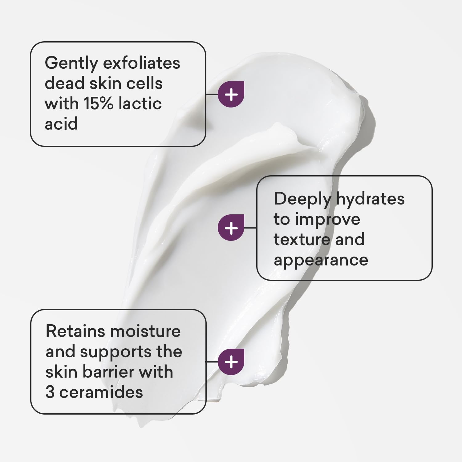 - Our formula: AmLactinβs crepe skin firming cream uses 15% lactic acid, a gentle yet effective AHA, to exfoliate dead skin cells and promote skin cell turnover; ceramides retain moisture and support the skin barrier to restore natural radiance