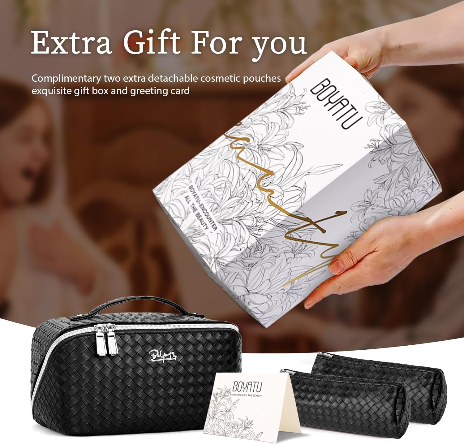 - Exquisite Gift Box and Greeting Card Set: This makeup travel bag comes beautifully packaged in an exquisite gift box, with a thoughtfully designed greeting card. It will be a great gift for ladies on Valentine's Day, Mother's Day, Birthdays, Christmas, and more.