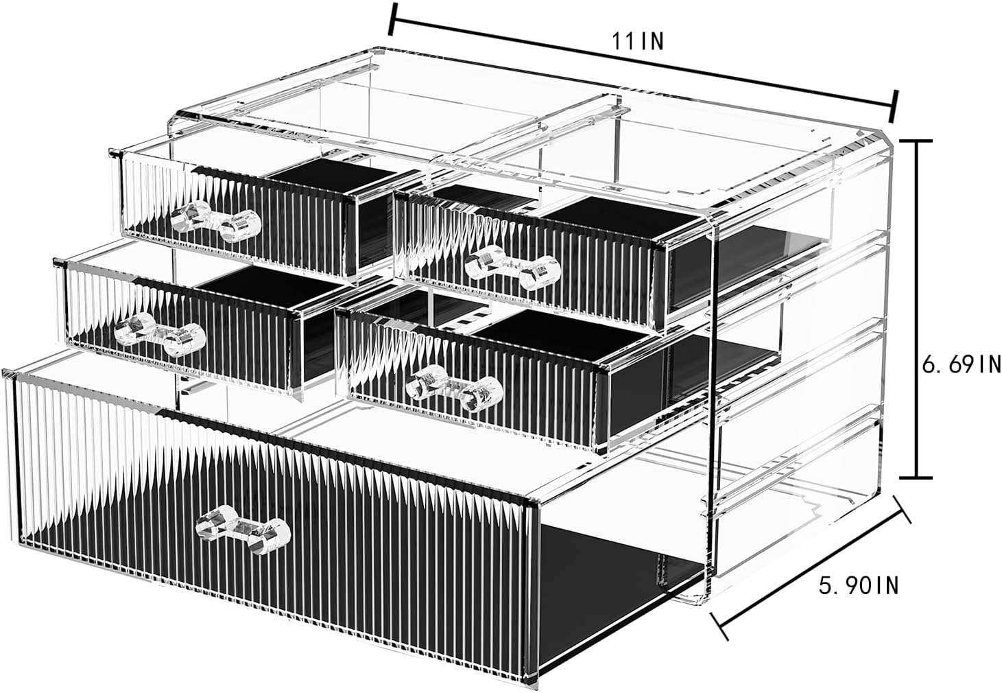 - With ample storage space, this make up organizers and storage is perfect for storing all your favorite makeup products, jewelry, and other accessories. The bathroom organizer features several compartments and drawers that are perfect for storing eyeshadows, lipsticks, brushes, and other makeup products.