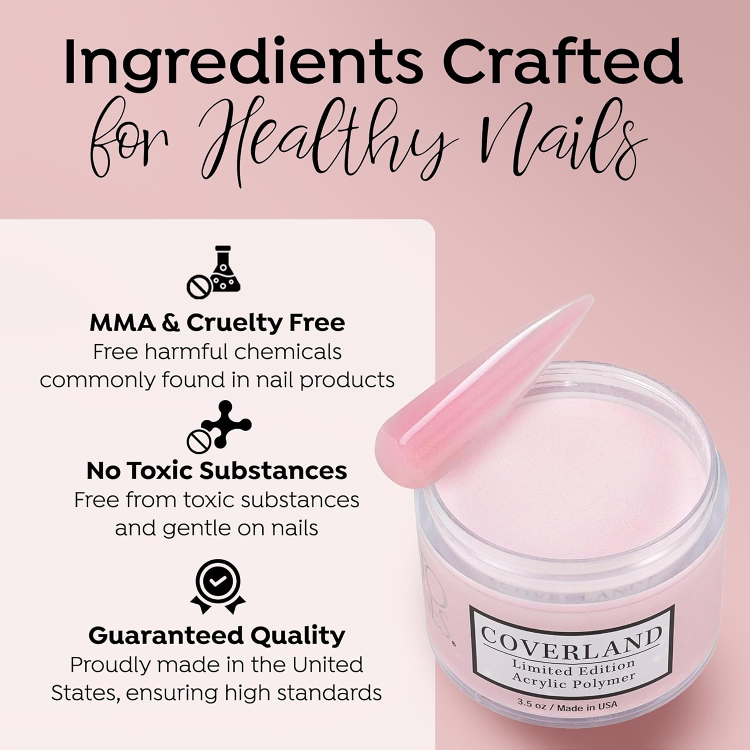 - βοΈππππ ππππππππ πππππ: The flexibility and adhesion properties of Coverland colored acrylic nail powder make it easy to shape nails with precision, and offers nice control for professionals who prefer to work with a polymerization rate of moderate to fast.