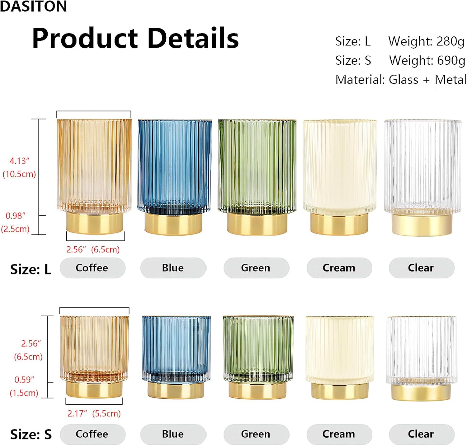 DASITON Makeup Brush holder Organizer,Crystal Cosmetic Makeup Brush Glass Brushes Storage Holder, Vintage Make Up Brush Cup Pen Pencil Holder striped vase(Cream S+L)