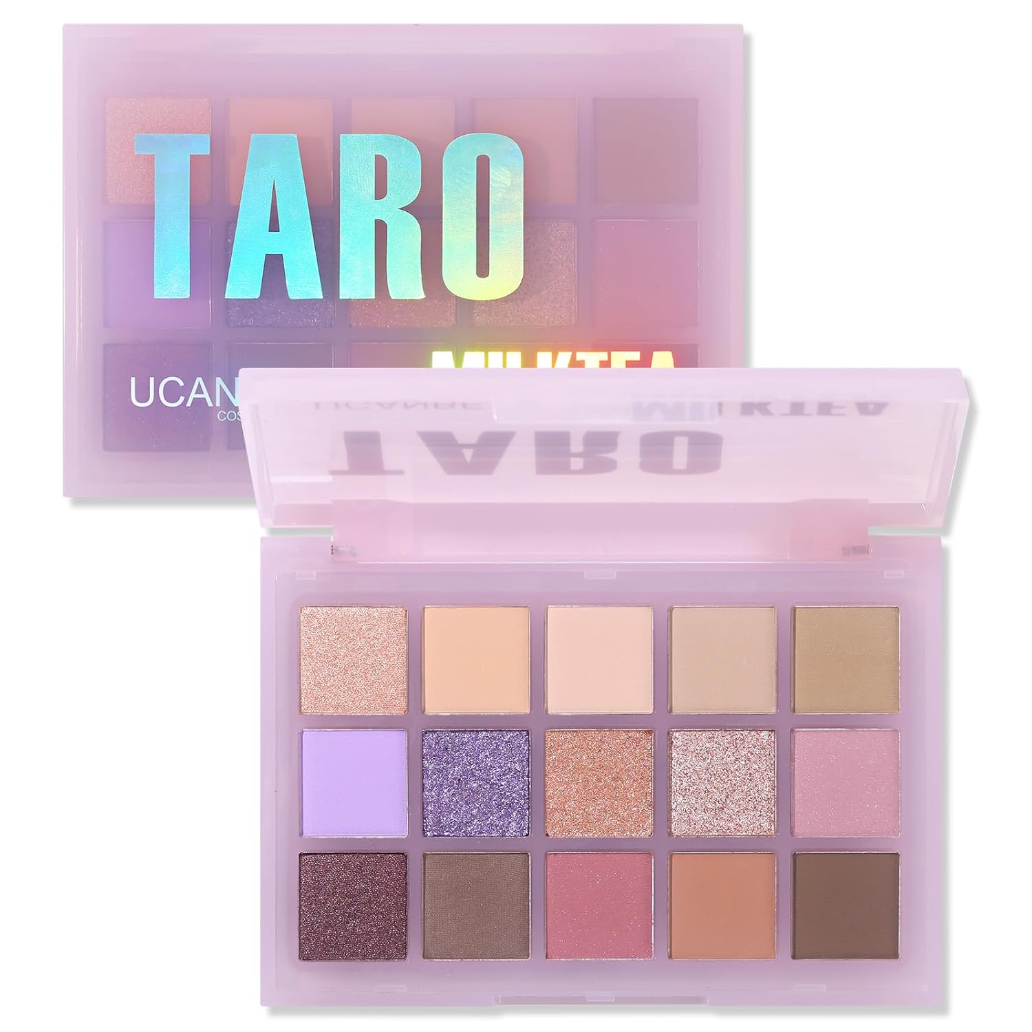 - ❤. This eye palette is inspired by taro milk tea, mixture of 15 stunning warm and cool toned shades that velvety & go on smoothly texture with matte shimmery finishes to create next level looks to unleash your artistry. Each high pigmented, easy to blend, buildable, and long-lasting, created to suit every skin tone and eye color.
