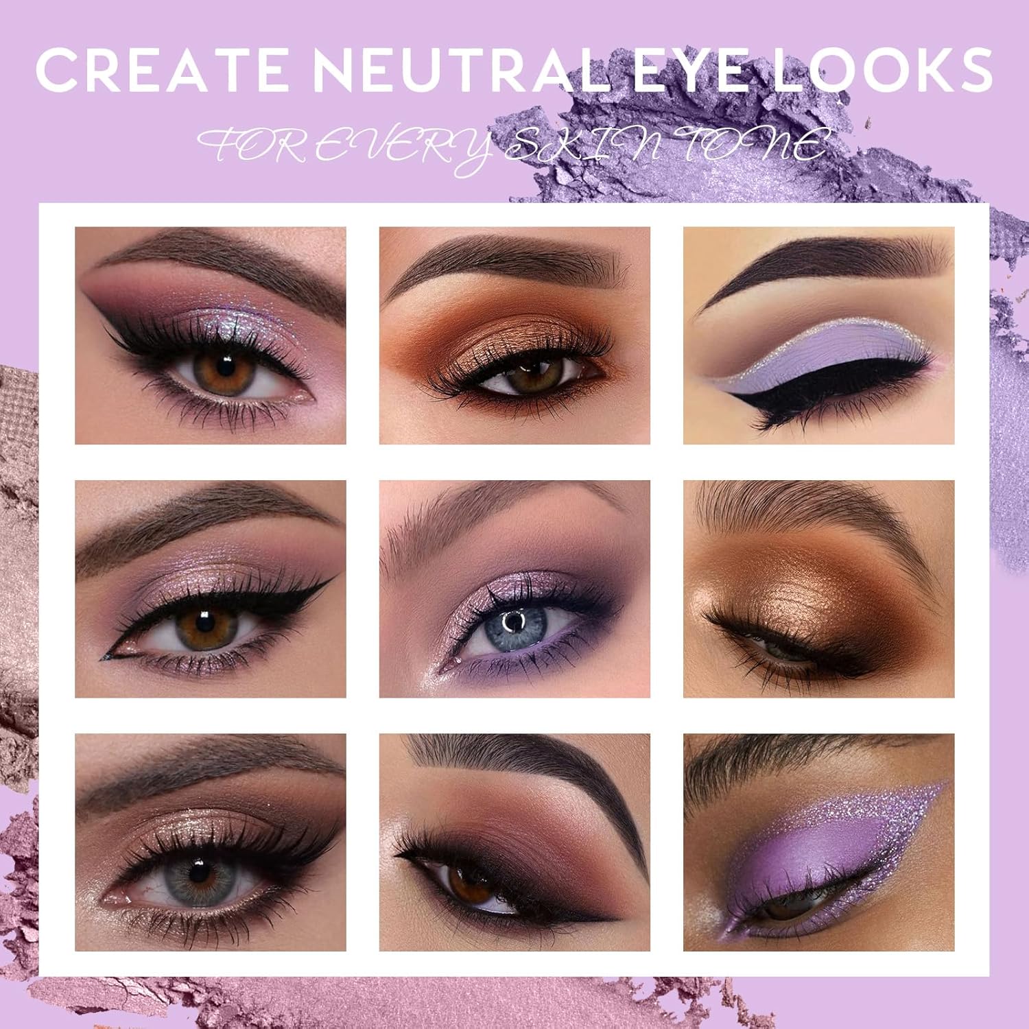 - ❤. Shadow pallet perfectly mix of nude colors and rich pressed shimmers to feed your makeup obsession. It featuring beige and rosy, violet, camel, taupe and brown mattes. And also with glittery purple silver reflective,pinky rainbow reflective and icy metallic foils, This is the ultimate collection for anyone who loves cool toned colors.