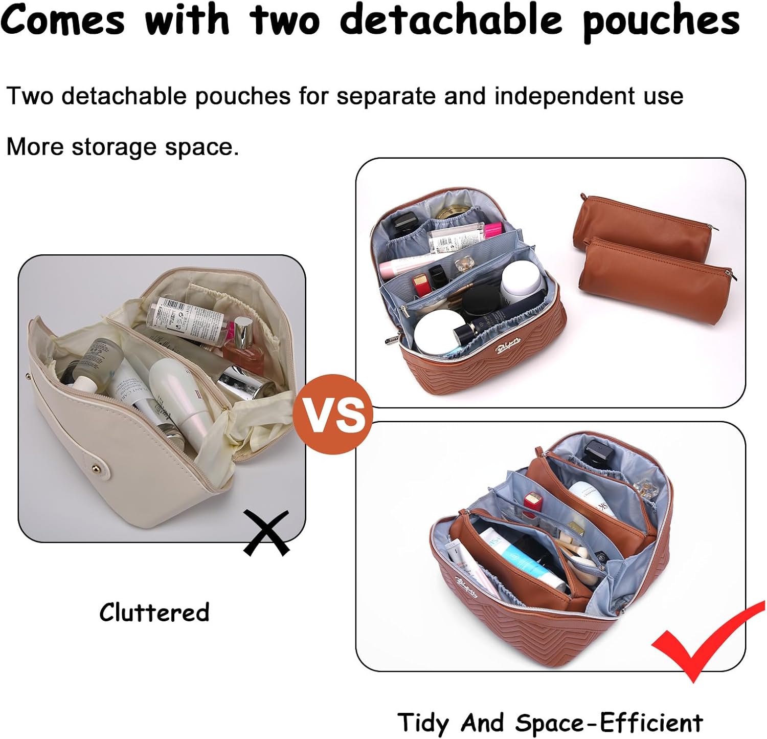 - 3 Pcs Makeup Bags Set: This travel make up bag comes with two detachable makeup pouches, ensuring optimal organization for your skincare products and cosmetics. Perfect for your travel, business trips, vacations, outdoor activities and picnics.