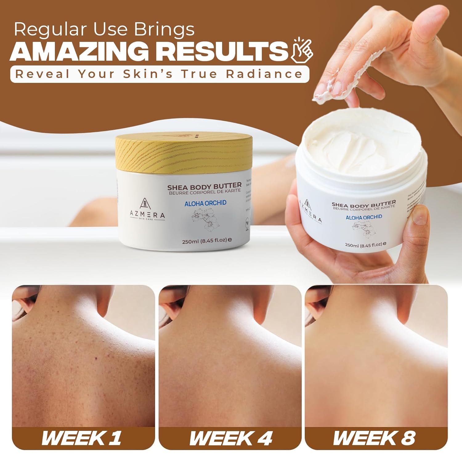 AZMERA Handcrafted Whipped Shea Body Butter – Luxurious Orchid Scented Moisturizer for Dry, Sensitive Skin with Argan Oil & Vitamin E – Vegan, Non-Greasy Skincare – 8.82 oz