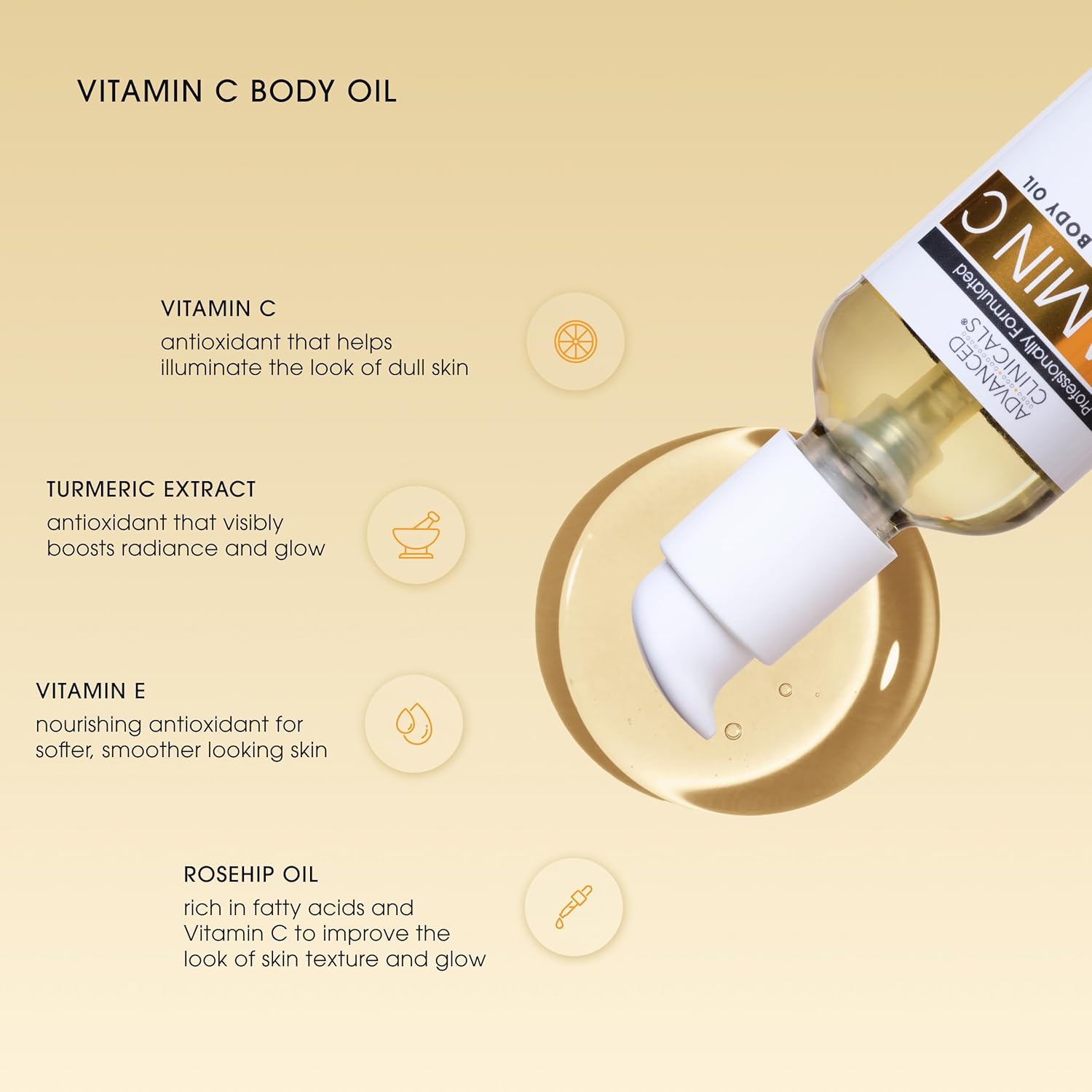 Advanced Clinicals Collagen Body Oil + Vitamin C Brightening Body Oil Moisturizer 2pc Skincare Set - Nourishing, Brightening, & Firming Massage Oil To Improve Look Of Crepe Skin + Dark Spots, 2PC Set