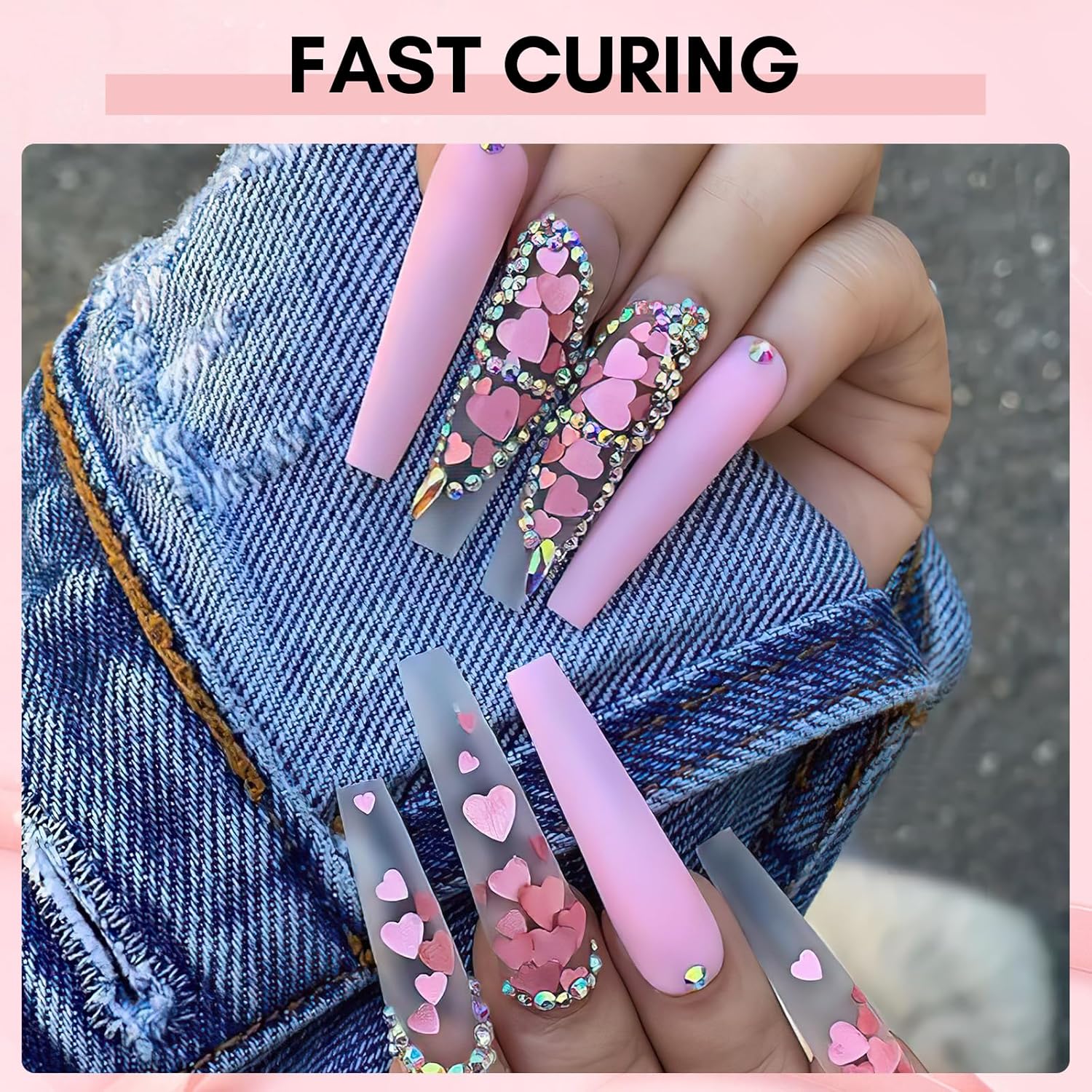 - Tips - This nail gem glue gel is fast-drying under UV light. Please try to stay away from UV/LED lights when using, and cover them promptly after use. To remove, please use a nail drill machine