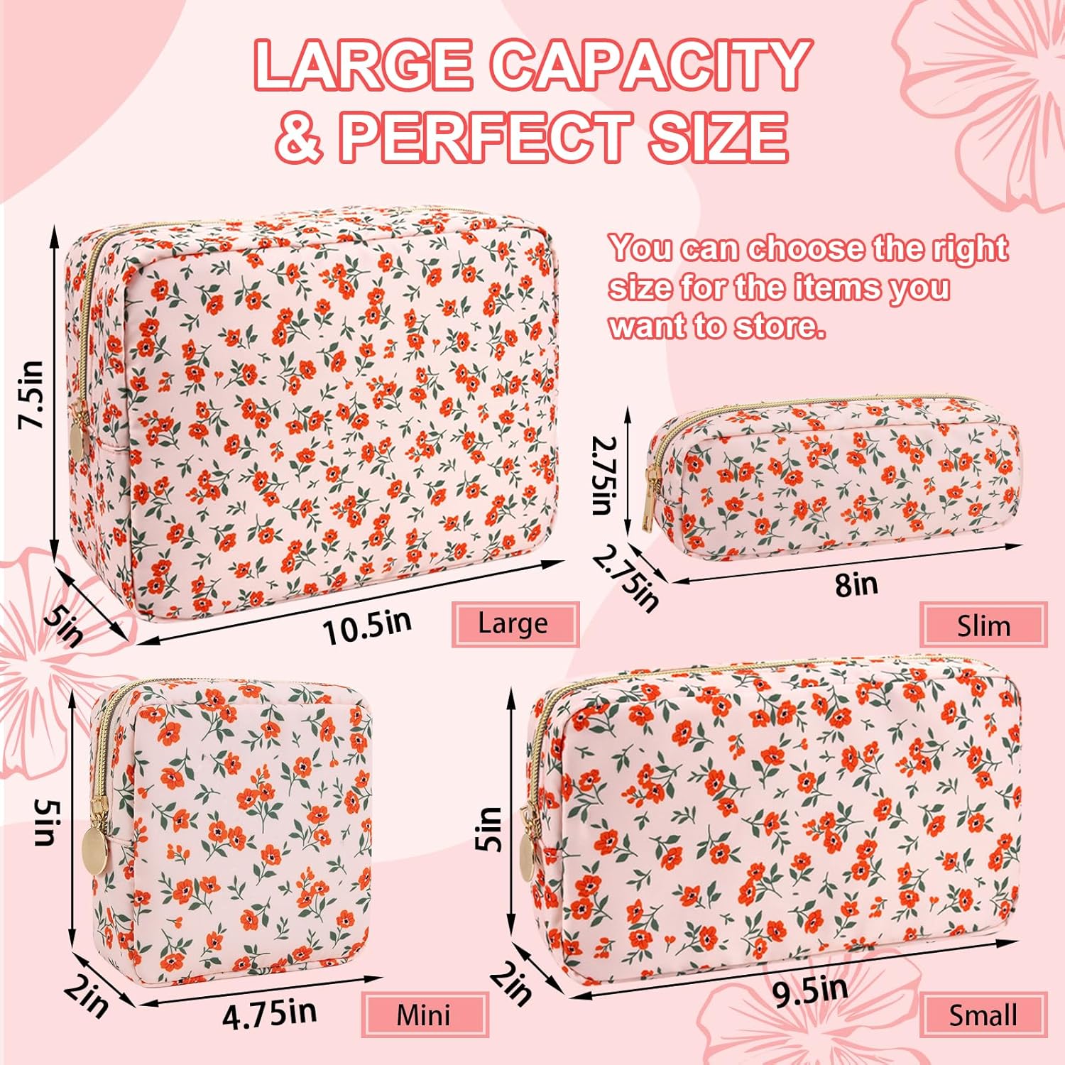 - 【Superior Quality】The floral makeup bag is made of lightweight and durable high quality nylon. It is waterproof and easy to clean, helping to protect your cosmetics and toiletries from water spill accidents.
