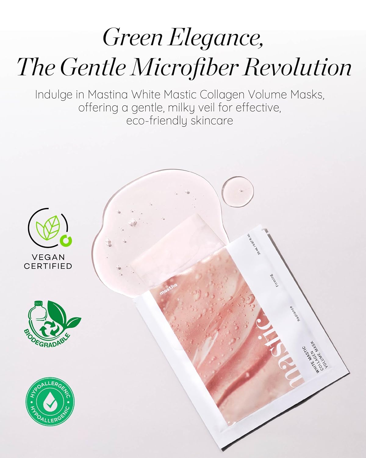 - MASTINA WHITE MASTIC COLLAGEN VOLUME MASK (20ml/0.67fl oz x 4 pieces) - Indulge in the ultimate self-care with our White Mastic Collagen Volume Mask. This skin radiance-boosting and firming sheet mask is a powerhouse of skin-revitalizing ingredients, delivering a spa-like experience to revive your tired and sagging skin. Unveil a more radiant and resilient complexion with every use.