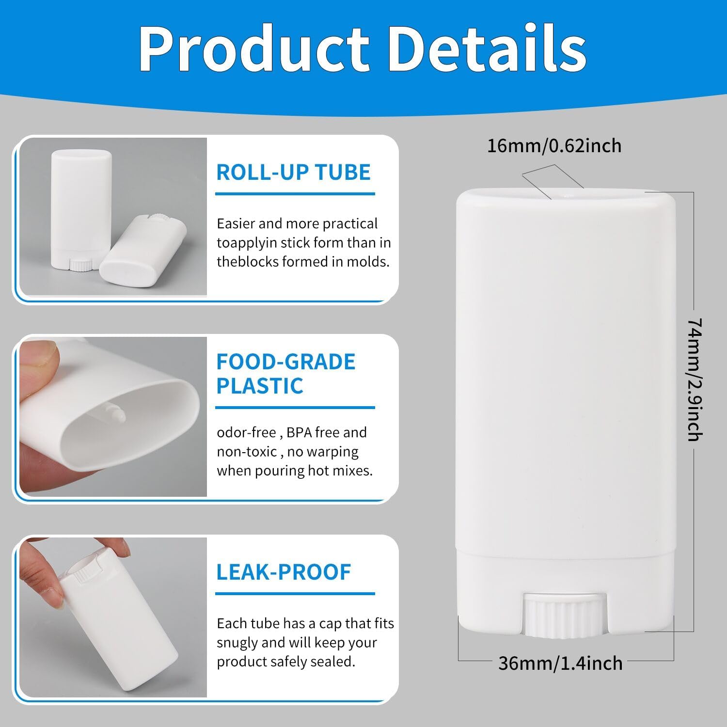 100PCS 15ML White Empty Oval Deodorant Lip Lipstick Balm Tubes Containers for DIY Homemade Crayon Chapstick Holder