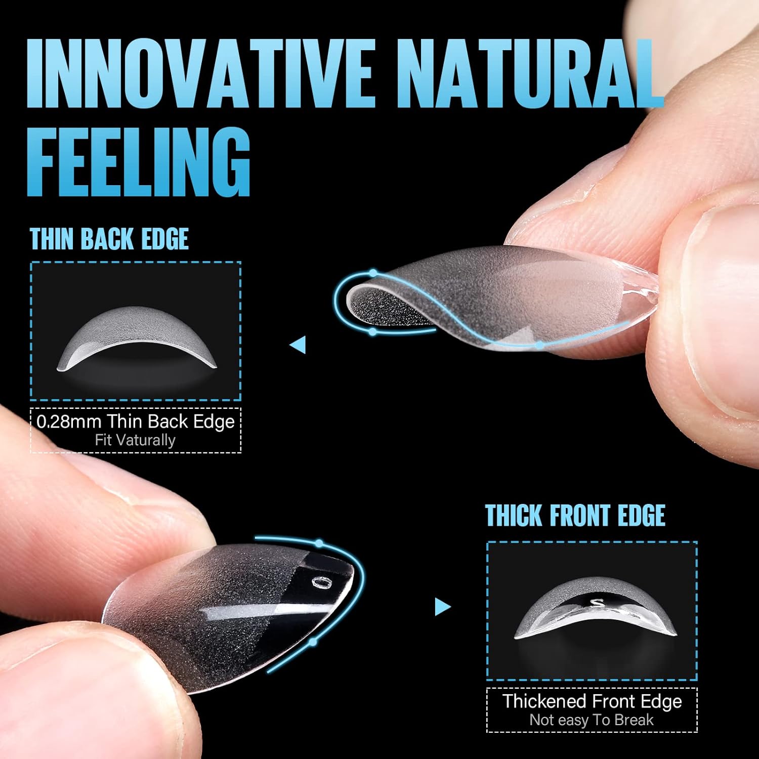 - 【Comfort To Fit】Each almond nail tips comes with an acrylic nail tips design is more suitable for the public nail shapes, ultra fit for any curved or flat nails. Professional clear nail tips shaping craft creates the ideal length and thickness. Which brings you a more comfort wearing effect, just like your own nails!