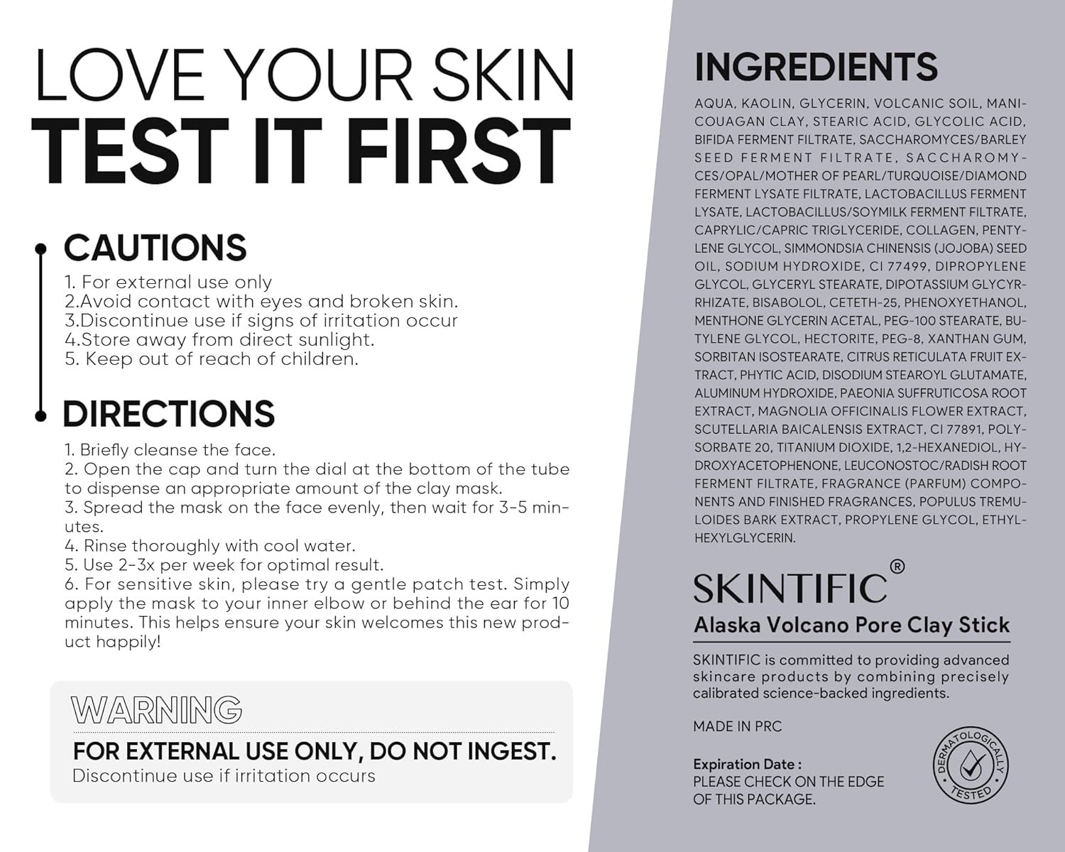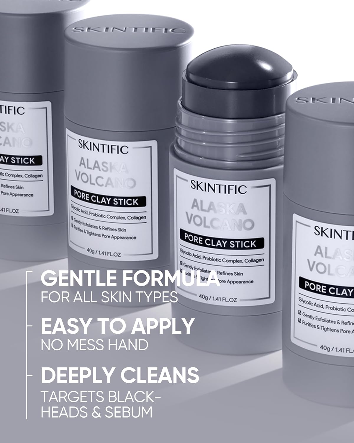 Deep Pore Cleansing Blackhead Remover Face Mask Stick, Mud Mask with Natural Alaska Volcano Clay, Gentle Exfoliating, Smoothing Skin, Non-Drying, Skincare Facial Mask
