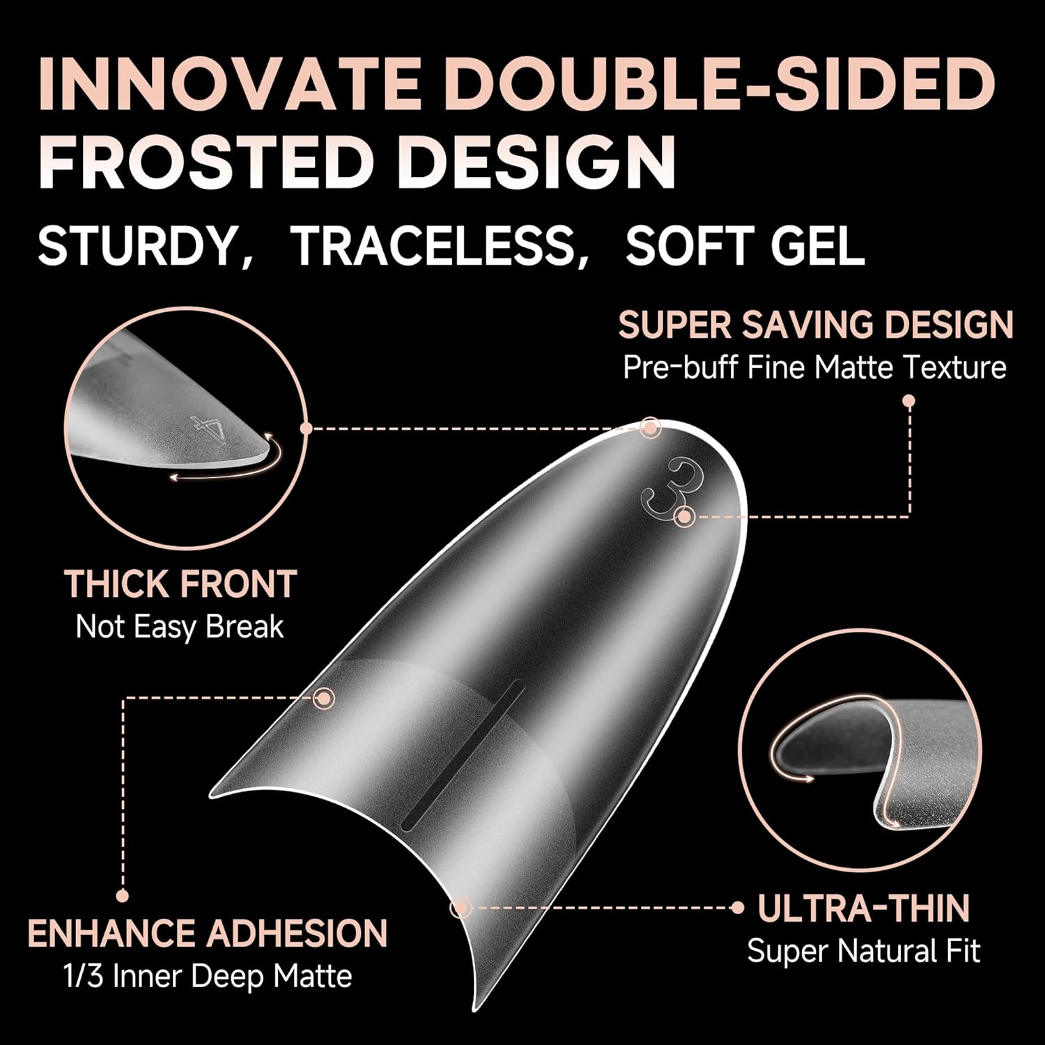- ๐NEWLY DOUBLE SIDE MATTE TEXTURE-Our medium almond nail tips feature double-sided matte nail tips design, no extra filing required! The outer wall makes it easier to apply nail polish and gives a glossy finish. The inner deep matte firmly adheres to the nail without worrying about the nail pop off easily. Easily get beauty that lasts 28+ days. We are committed to bringing you professional, efficient and safe nail care.