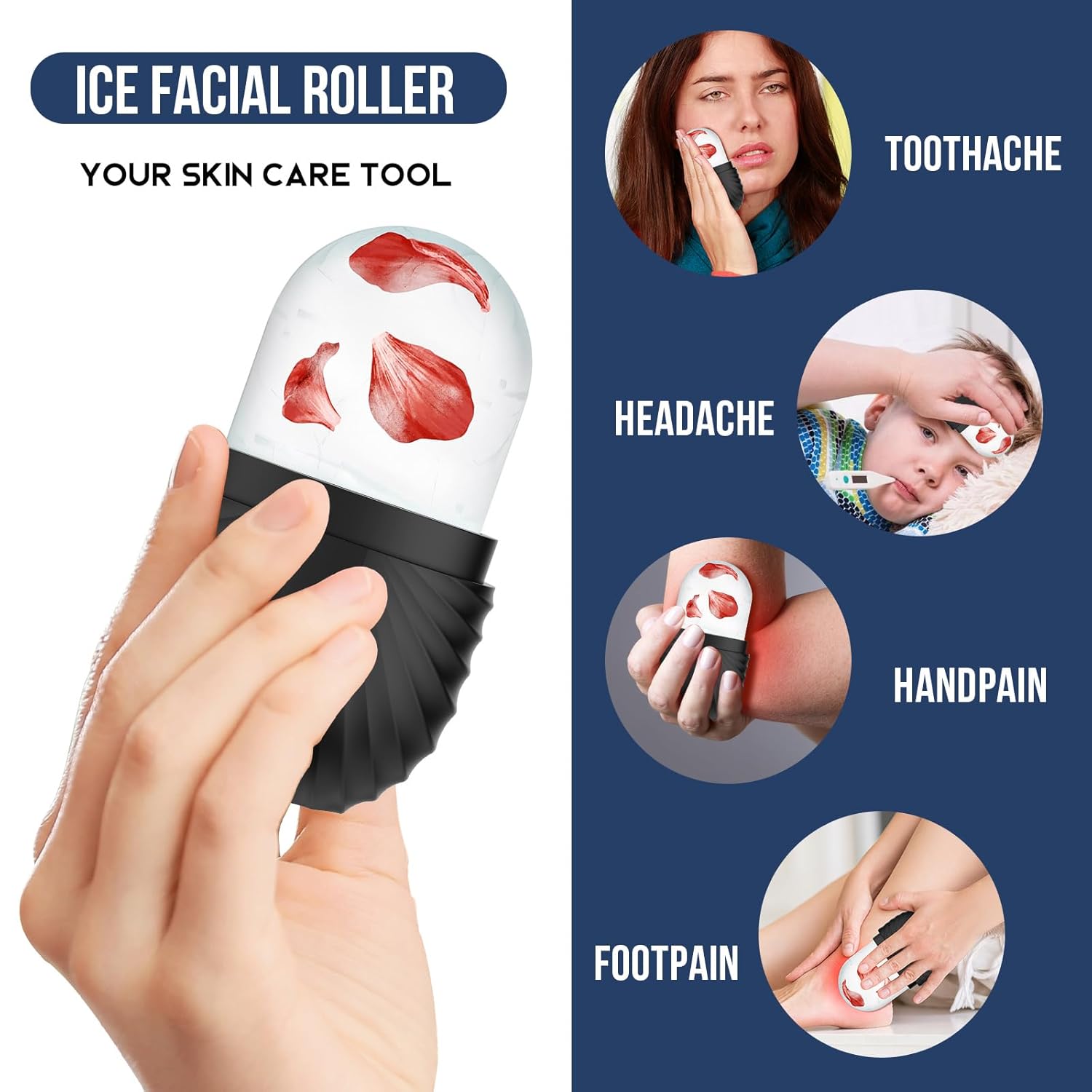 - Facial Ice Roller - Our ice roller for face is a skincare tools that helps you to improve skin problems and skin health, which is suitable for all skin types, It has multiple functions such as beauty, cleansing. We suggest using your ice cube each morning for an instant wake up for improving tired skin, giving your face a healthy glow.