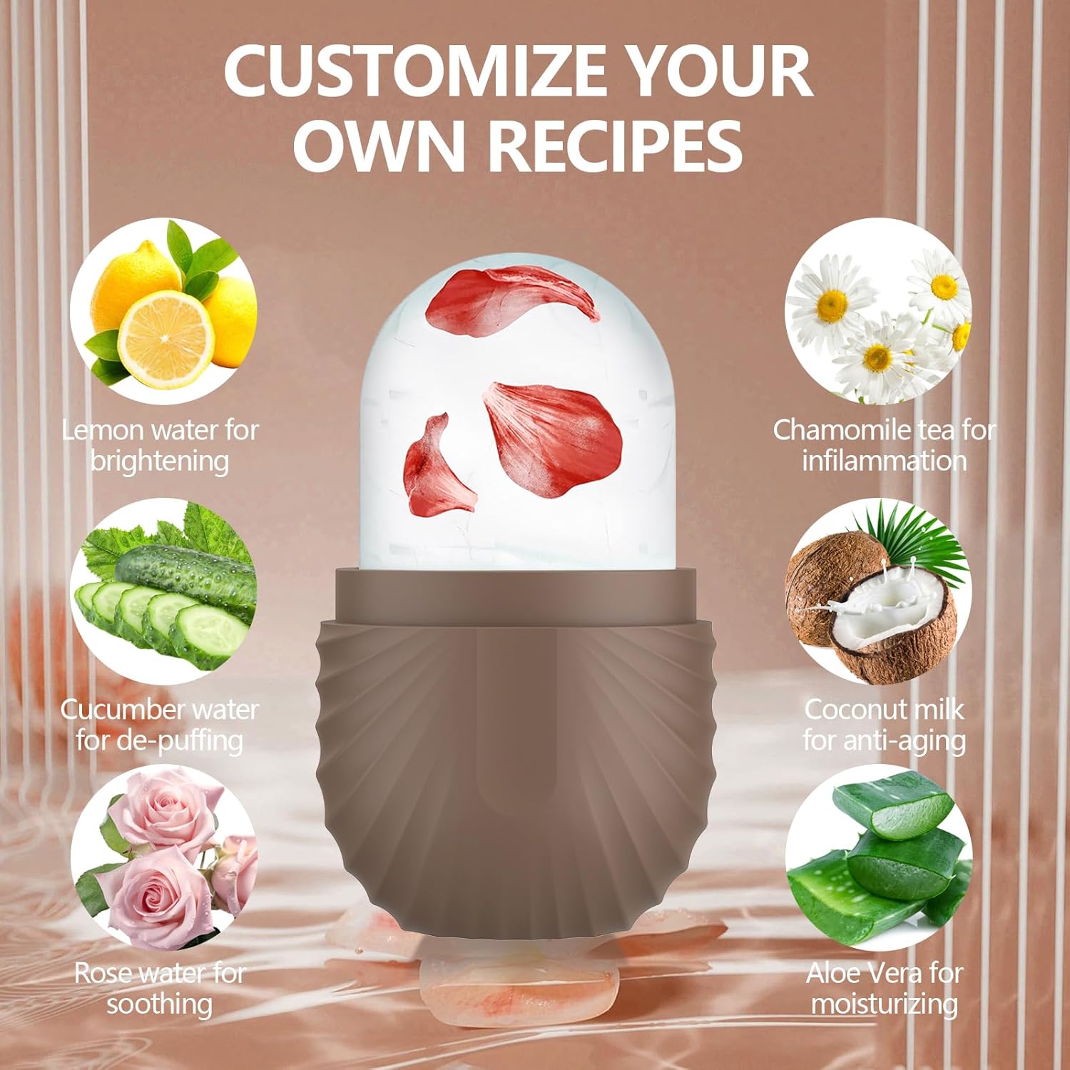 - Customize Preferences - Facial ice roller can enhance the skin care effect as per your creativity and customized formula according to your specific skin needs, such as coconut for improving skin. Even you can use a juicer to squeeze them into juice, then add water, and roses to the ice tray.
