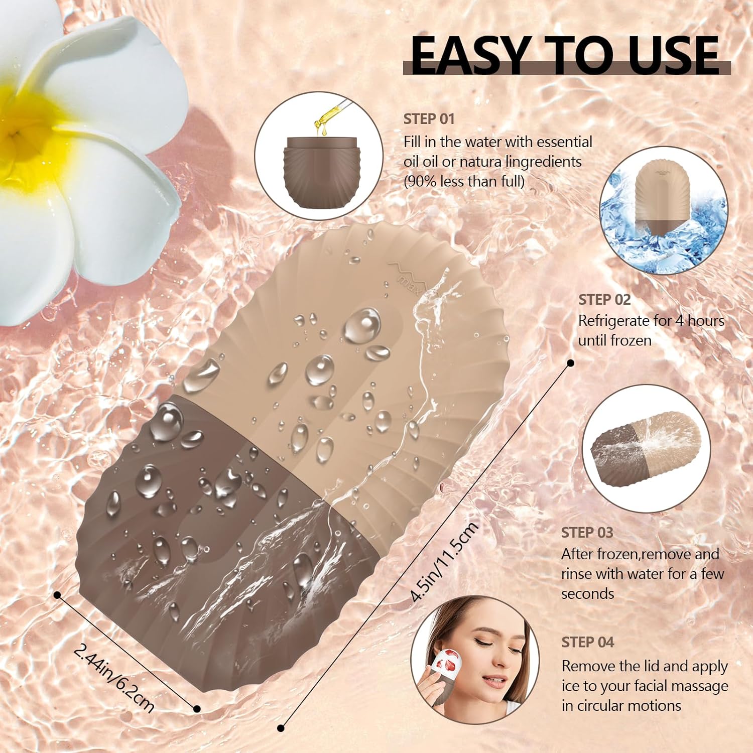 - Easy to Use - After filling and freezing for three to four hours, you can take it out of the refrigerator to thaw or soak it in hot water for a while, and then you can easily open it for use. Make sure not to fill the mold up completely because water expands when it's cold. To use, apply ice to skin in circular motions every 30 seconds. NOTE: Water droplets may be generated during use, please prepare a dry towel in advance.
