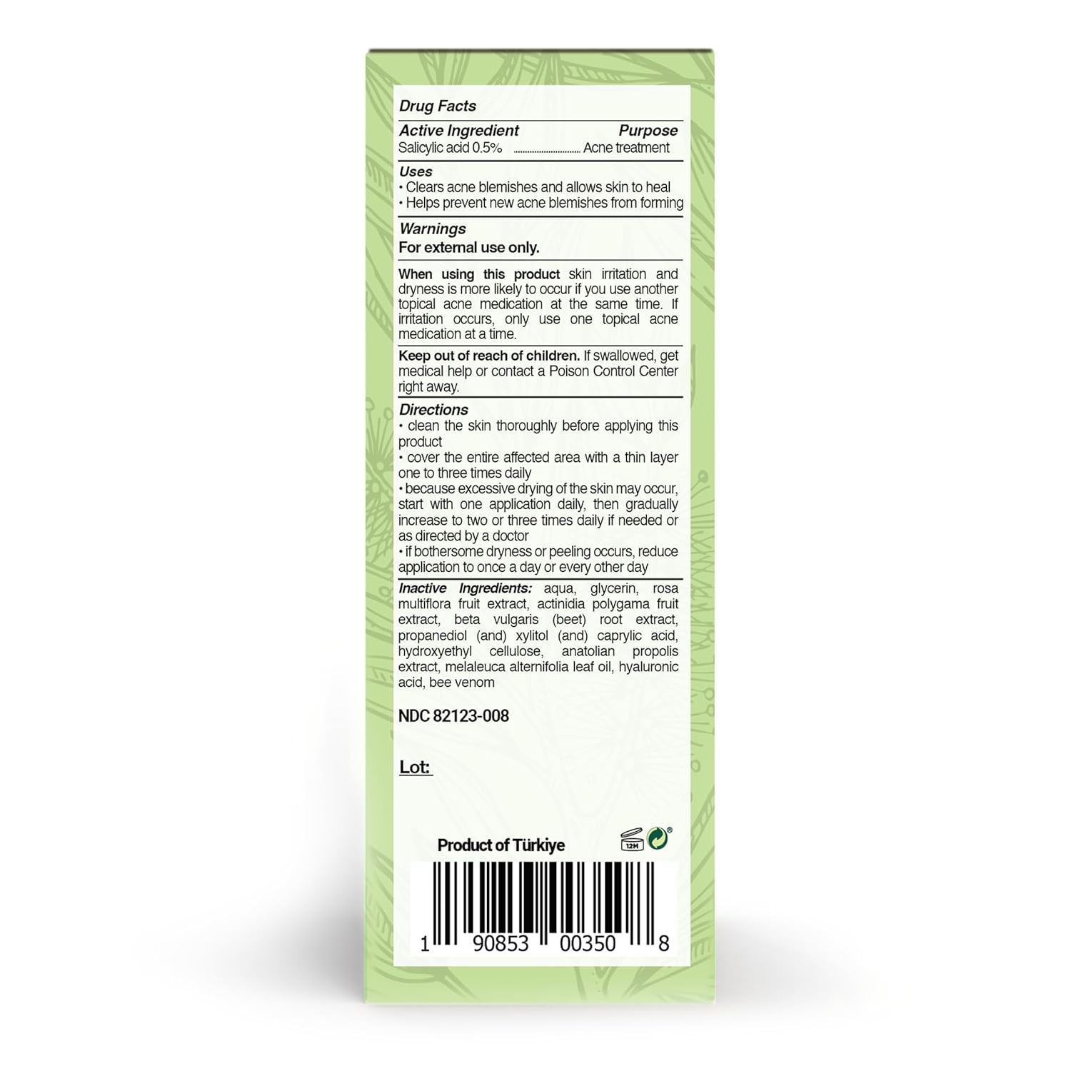 - Unique and powerful formula: This product contains salicylic acid along with bee venom, anatolian propolis extract, hyaluronic acid, tea tree oil and natural plant extracts.