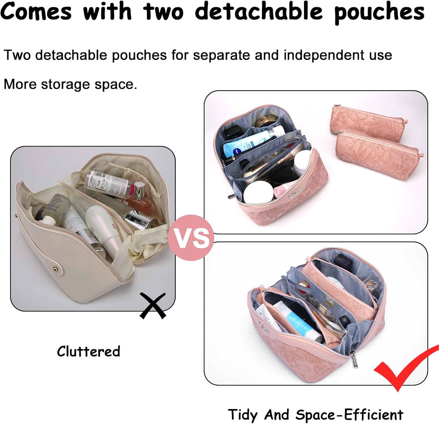 - 3 Pcs Makeup Bags Set: This travel make up bag comes with two detachable makeup pouches, ensuring optimal organization for your skincare products and cosmetics. Perfect for your travel, business trips, vacations, outdoor activities and picnics.