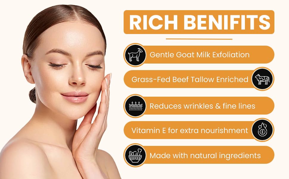 - Luxurious Organic Blend: Our goat milk moisturizer combines grass fed beef tallow and goat milk, crafting an opulent, natural moisturizer. This organic concoction nourishes skin, offering a luxurious experience unlike any other, suited for those who cherish natural beauty care.