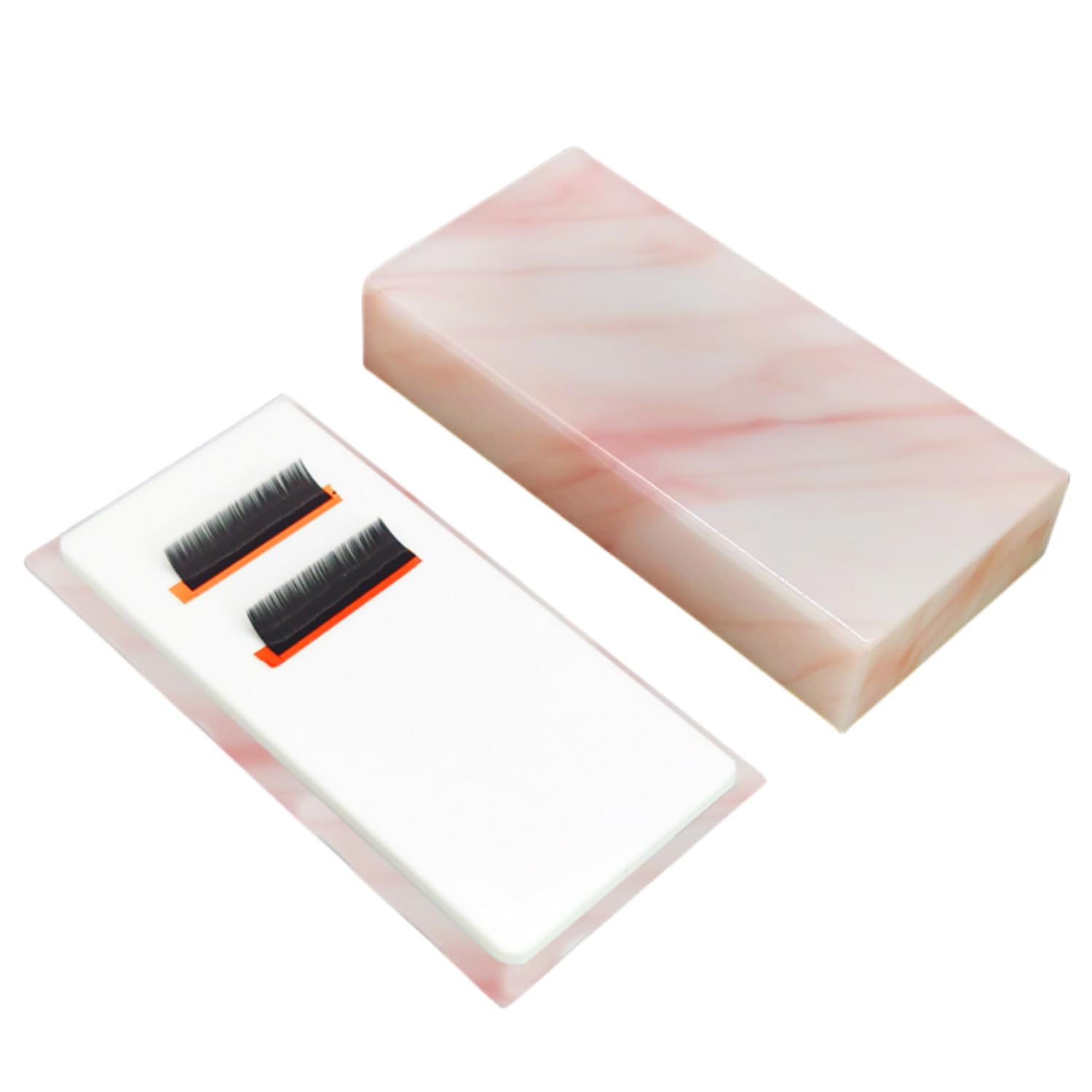 Eyelash Grafting Pallet with Cover, Dust-proof Acrylic Lash Tile holder, Eyelash Extensions Storage Gasket Pads for Beauty Artist Salon Beginners (Marble Pink)