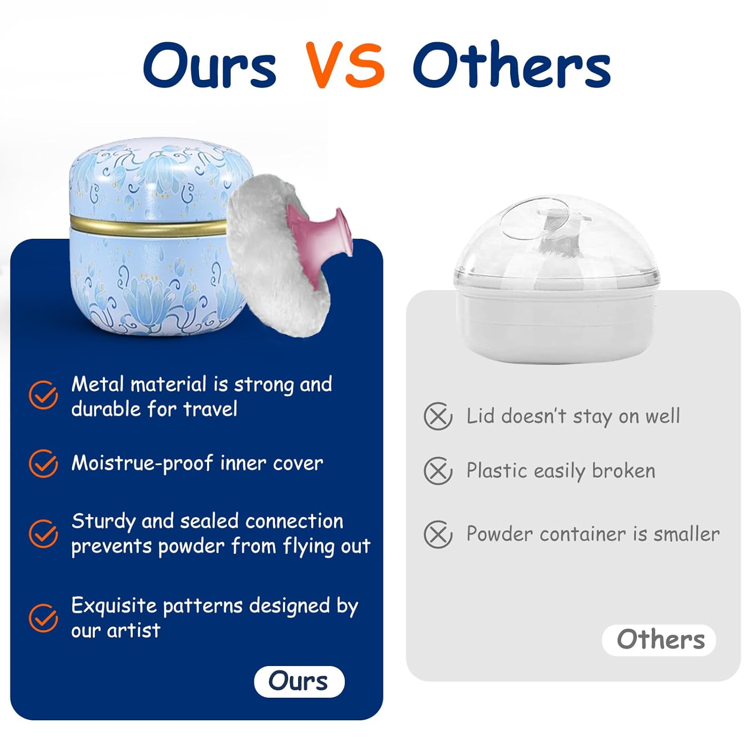 - CONVENIENT TO TRAVEL: the compact and strong powder container are convenient for daily home care, is also easy to carry and portable when traveling. don't worry about spilling powder. [how to use: please rotate it gently to open, don't use too much force to cause the powder to fly out. please press firmly to close]