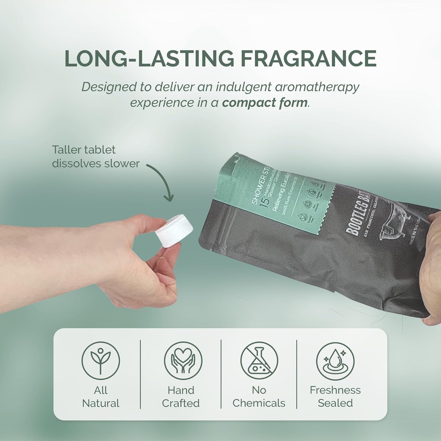 - Aromatherapy - Each shower steamer is made using 100% Pure Essential Oils and Natural Menthol to calm your mind and refresh your senses, that will leave you rejuvenated with each use.