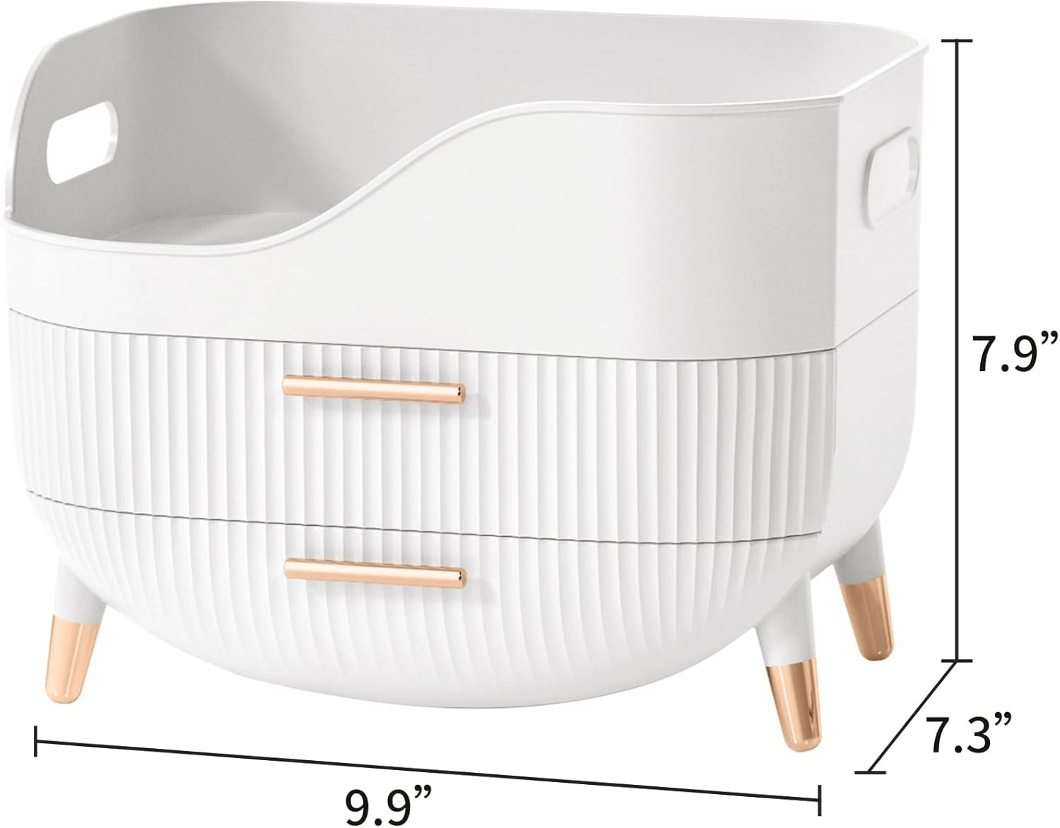 - Appearance and size:9.9βLΓ7.3βWΓ7.9βH,Large capacity cosmetic organizer with 2 drawers and top compartment,can organize tall bottles of skincare and cosmetics,Household containers for storing and organizing makeup
