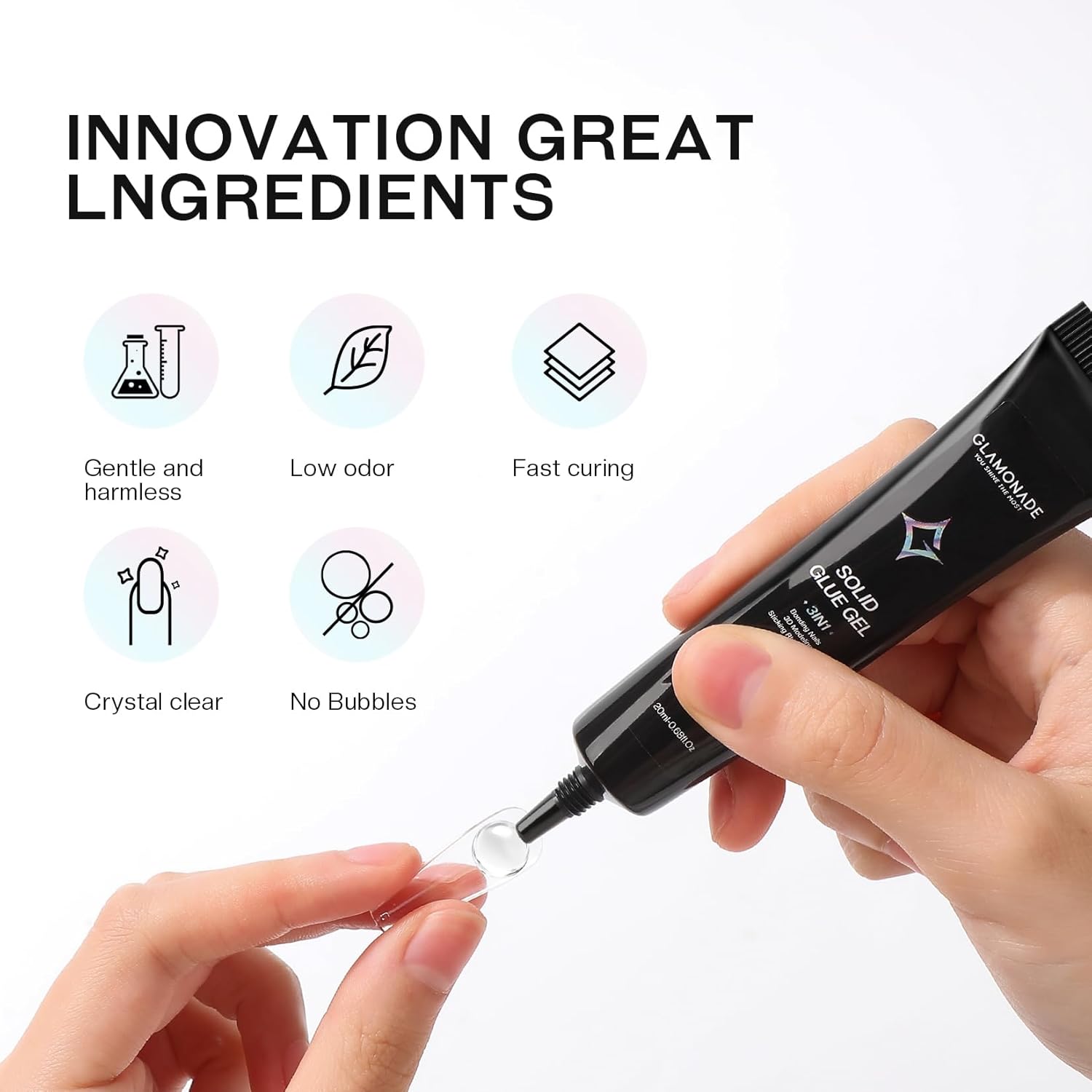 - Non-Stick & Easy to Use: Unlike other adhesive glue, uv gel nail glue is designed to be non-stick on your hands and tools. Semi solid nail glue means no more messy fingers or difficult cleanups. Apply with precision and enjoy a smooth, hassle-free experience every time.