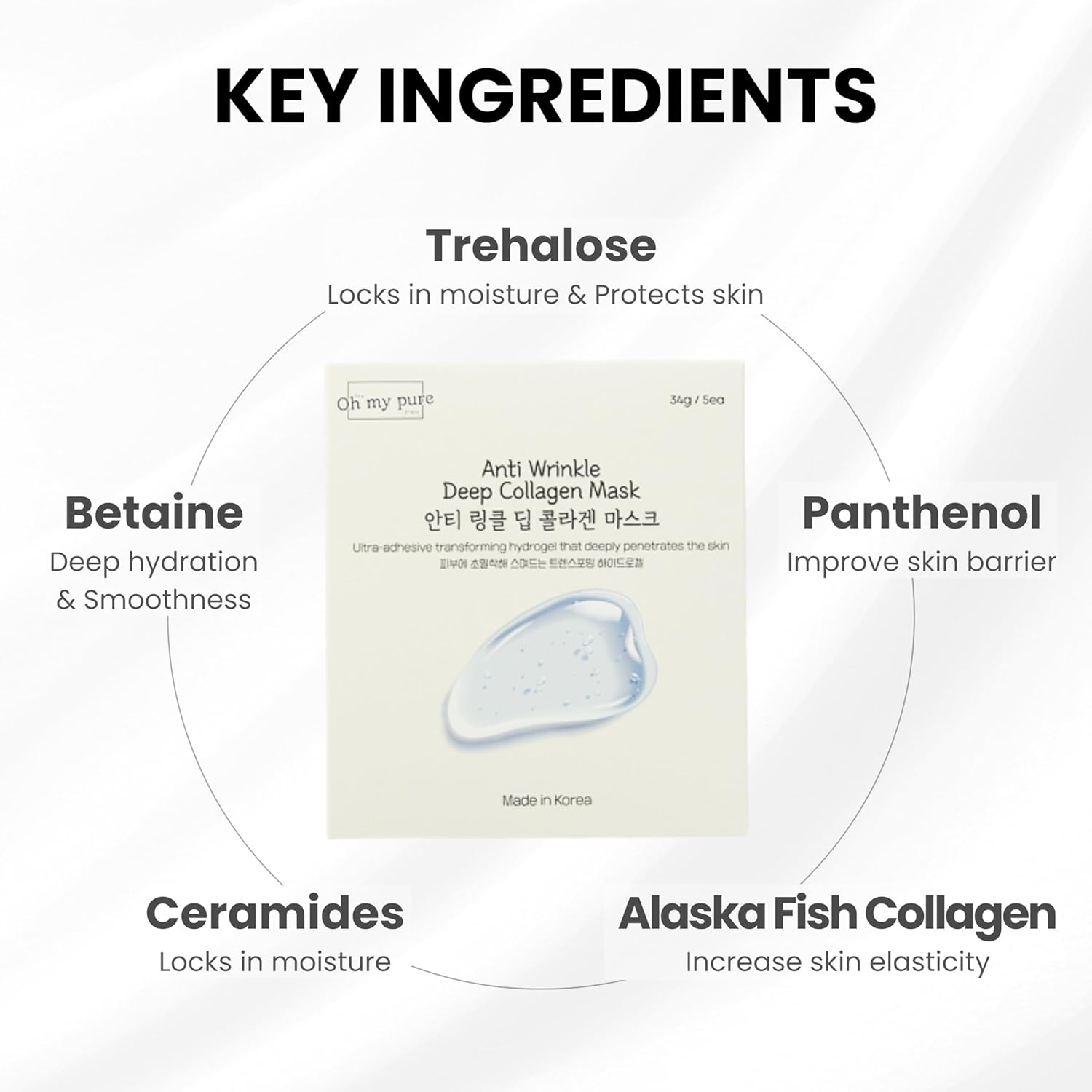 Collagen Hydrogel AntiWrinkle Deep Face Mask 4+1 EA Ultimate Hydration, Improves Skin Texture, Affordable Luxury, Glowing Skin, Reduces Fine Lines & Wrinkles, Made in Korea OHMYPURE (5, Deep Collagen)