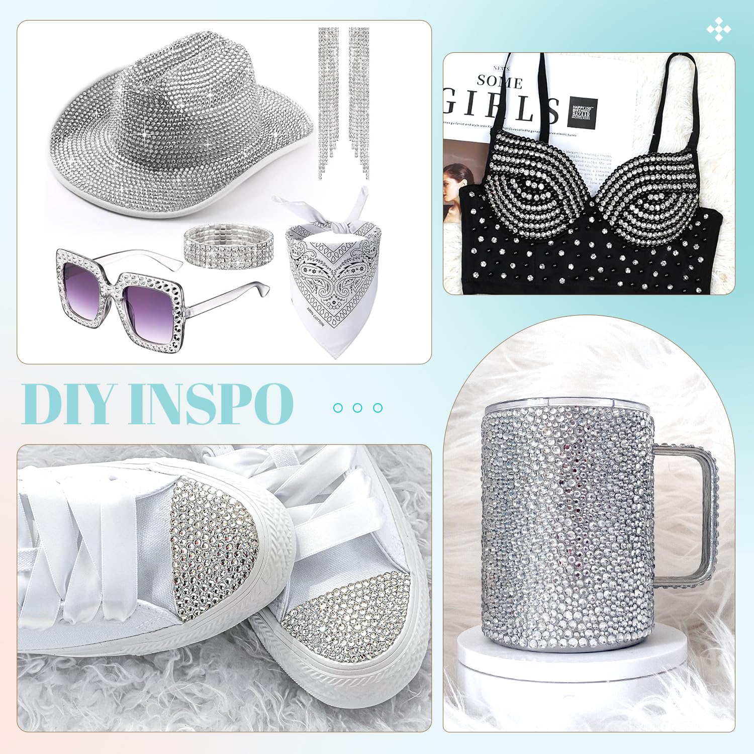 - 💎WIDE APPLICATION -- These sparkling iridescent resin crystals are perfect for creating dazzling looks. Use them for bedazzling DIY crafts like shoes, tumblers, mugs, bottles, phone cases, popsockets, scrapbooks, photo frames, diamond paintings, greeting cards, bags, glasses, guitars, keychains, hats, masks, hair clips, bracelets, wristbands, clothing, wedding dresses, and more. Apply it to what you want to bling!