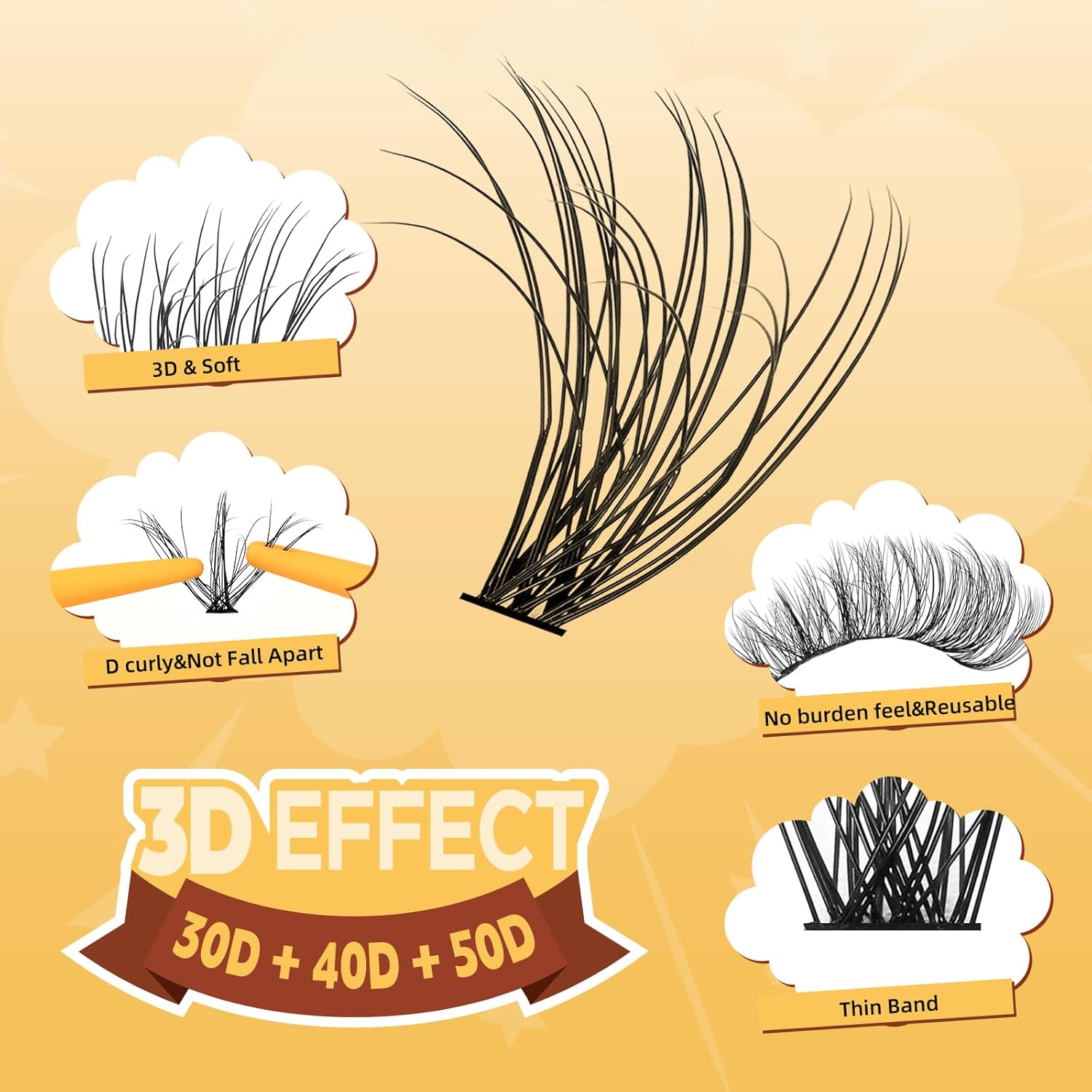- 3D Effect 30D+40D+50D: QUEWEL 3D 30D+40D+50D lashes extension kit mix length 10-16mm D lash clusters. The lashes clusters look thick from the front, clearing layers from the side. Lash clusters are soft and light, with no knots. The thicker 3d DIY lash extension kit will provide seamlessly blended results with your natural lashes. You can wear eyelashes clusters according to your preference