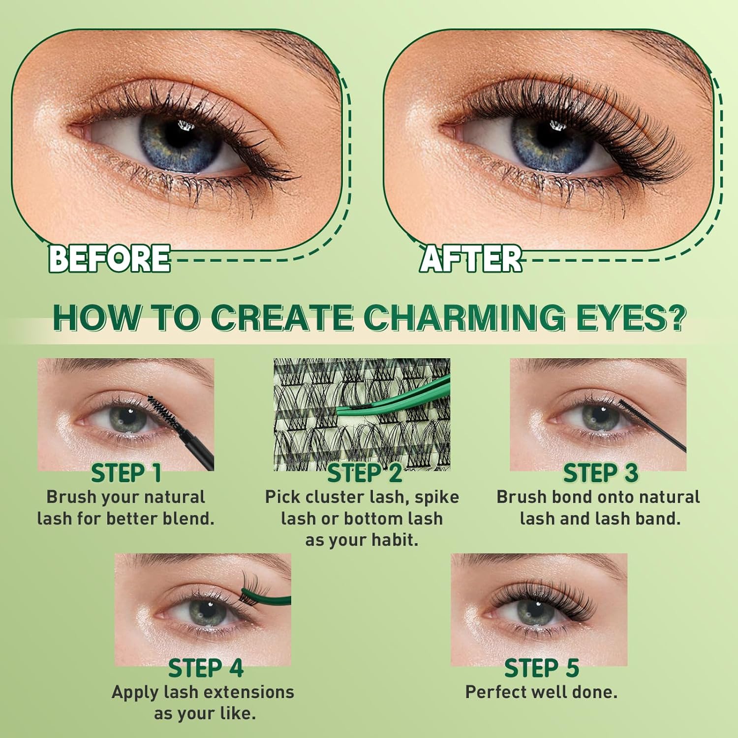 - Easy to Wear &Remove:Very easy to apply the cluster lashes with the brush included in the kit,the lash bond and seal extend the wear up to 3-4 days and the remover is very easy to remove the lash cluster and will not hurt the eyes