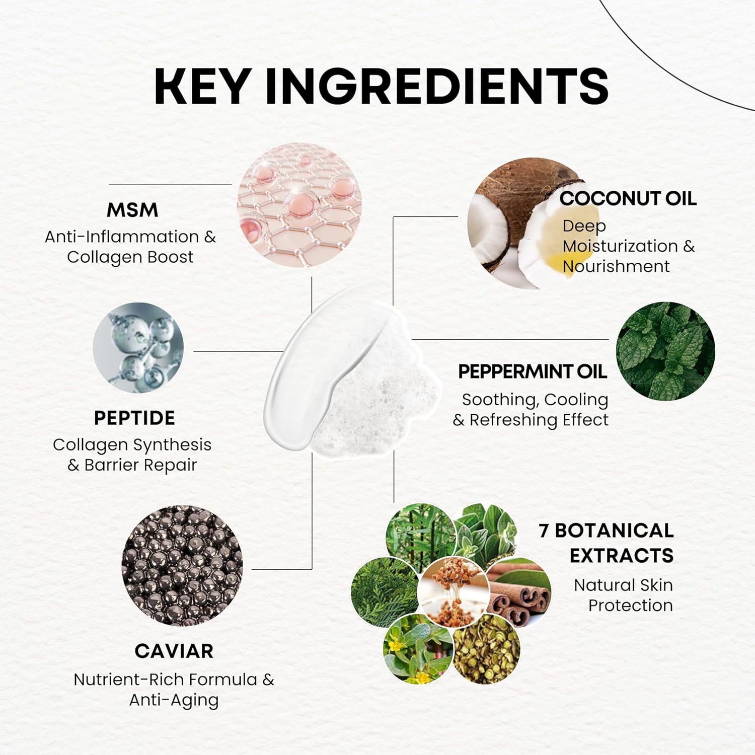 - POWERFUL BUT GENTLE FOAMING FACE CLEANSER β La Noubelle bubble facial cleanser deeply cleanses while hydrating the skin with caviar, MSM, and peptides. Gentle coconut-derived surfactants and plant extracts remove dirt and makeup without irritation, leaving your skin refreshed.