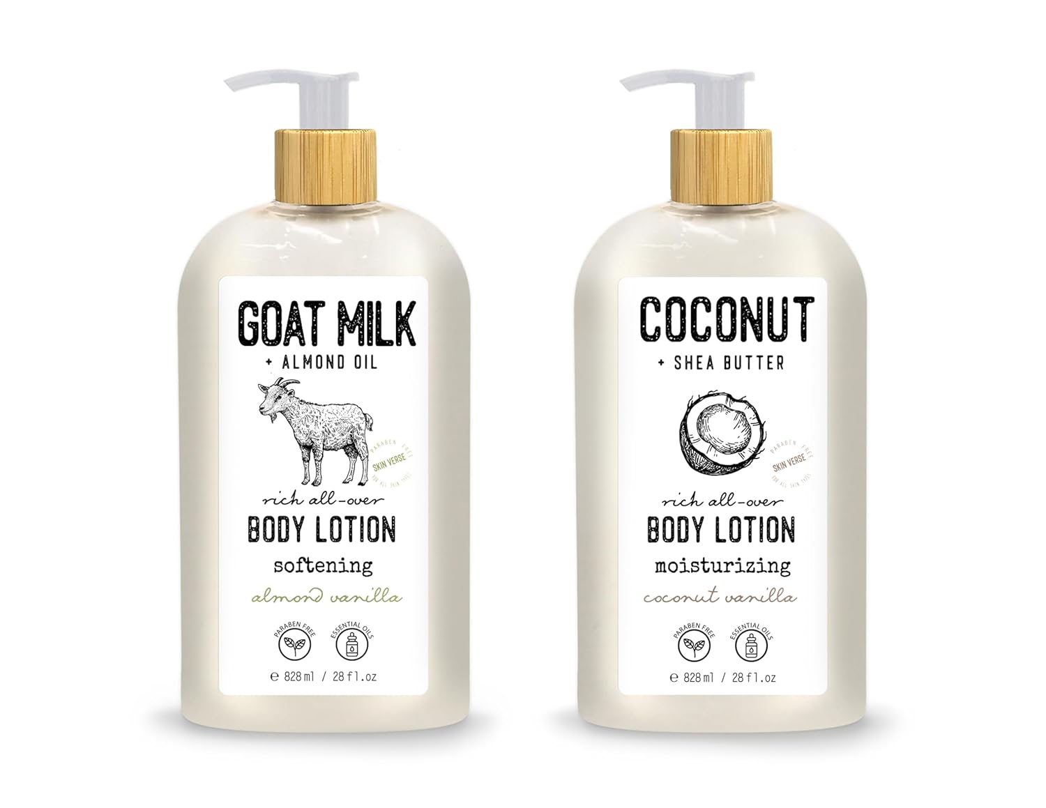 Skin Verse Body Lotion, Goat Milk, Almond Oil Body Lotion, Softening, Almond Vanilla, Coconut, Shea Butter Body Lotion, Moisturizing, Coconut Vanilla, 28 fl. oz. | Home and Body Co