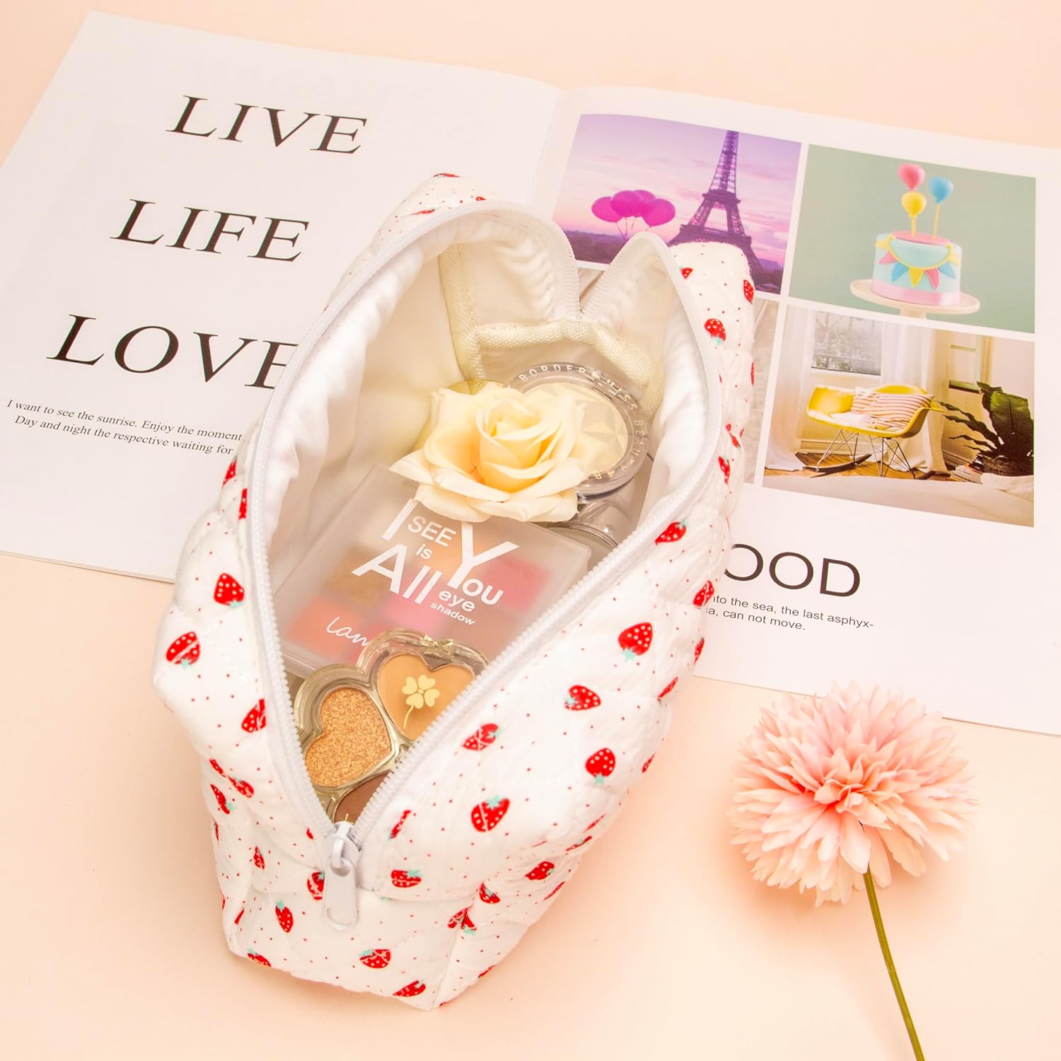 - Versatile Utility: Beyond makeup, utilize this bag for storing skincare products, hair accessories, or even stationery items. Its versatile design makes it an essential addition to your daily essentials or a thoughtful gift option.