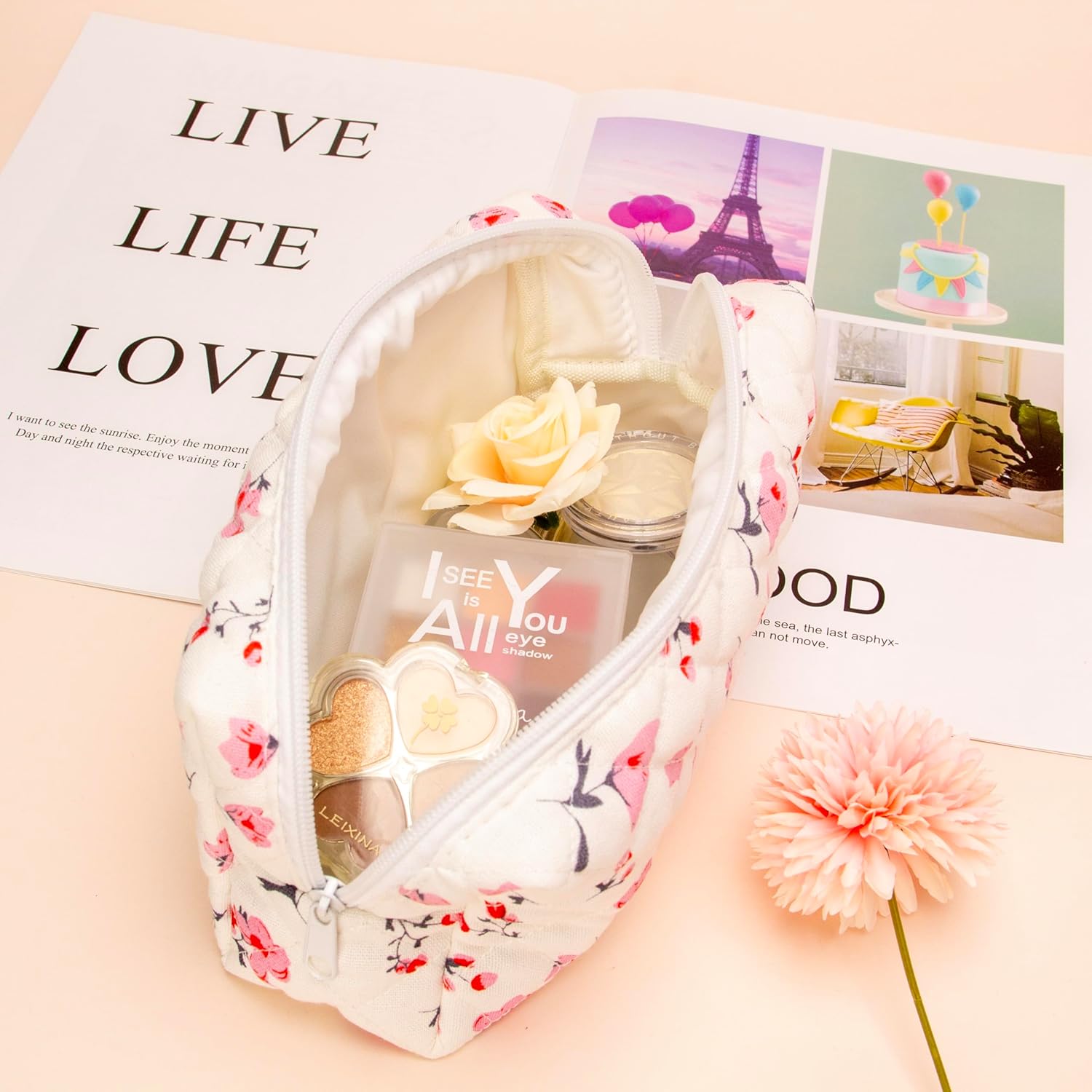 - Versatile Utility: Beyond makeup, utilize this bag for storing skincare products, hair accessories, or even stationery items. Its versatile design makes it an essential addition to your daily essentials or a thoughtful gift option.