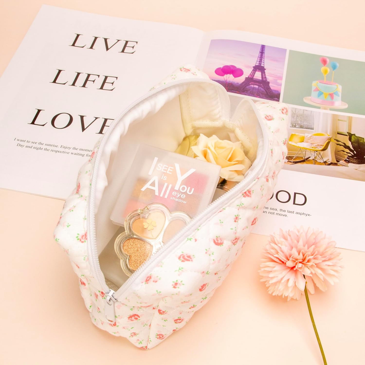 - Versatile Utility: Beyond makeup, utilize this bag for storing skincare products, hair accessories, or even stationery items. Its versatile design makes it an essential addition to your daily essentials or a thoughtful gift option.