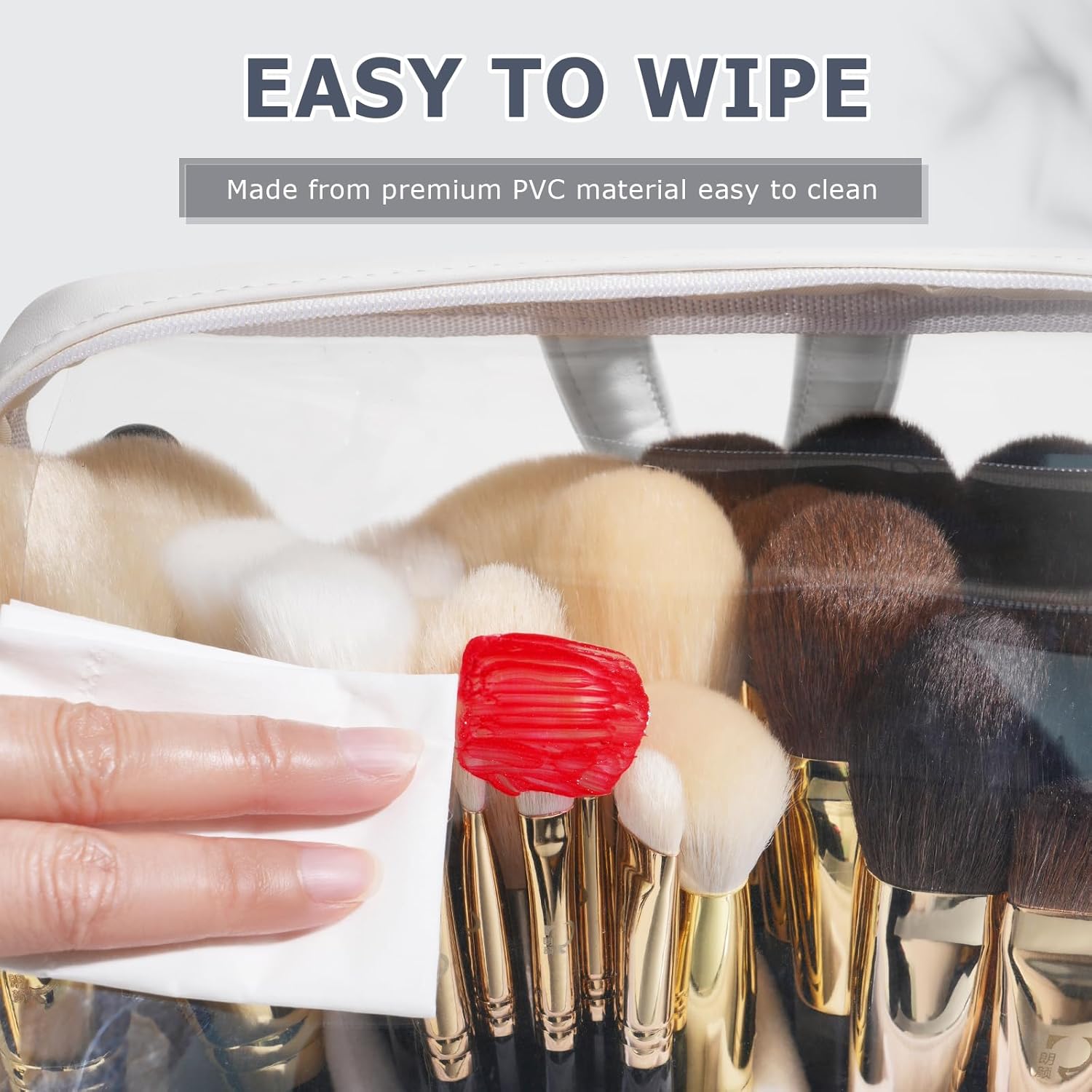 - High-quality Material: This Makeup Brush Bag choose high-quality waterproof fabric and visual TPU material. Make this makeup brush bucket bag not only waterproof and easy to clean, easy to find items, but also do not have to worry about long-term use will make it wrinkle and damaged.