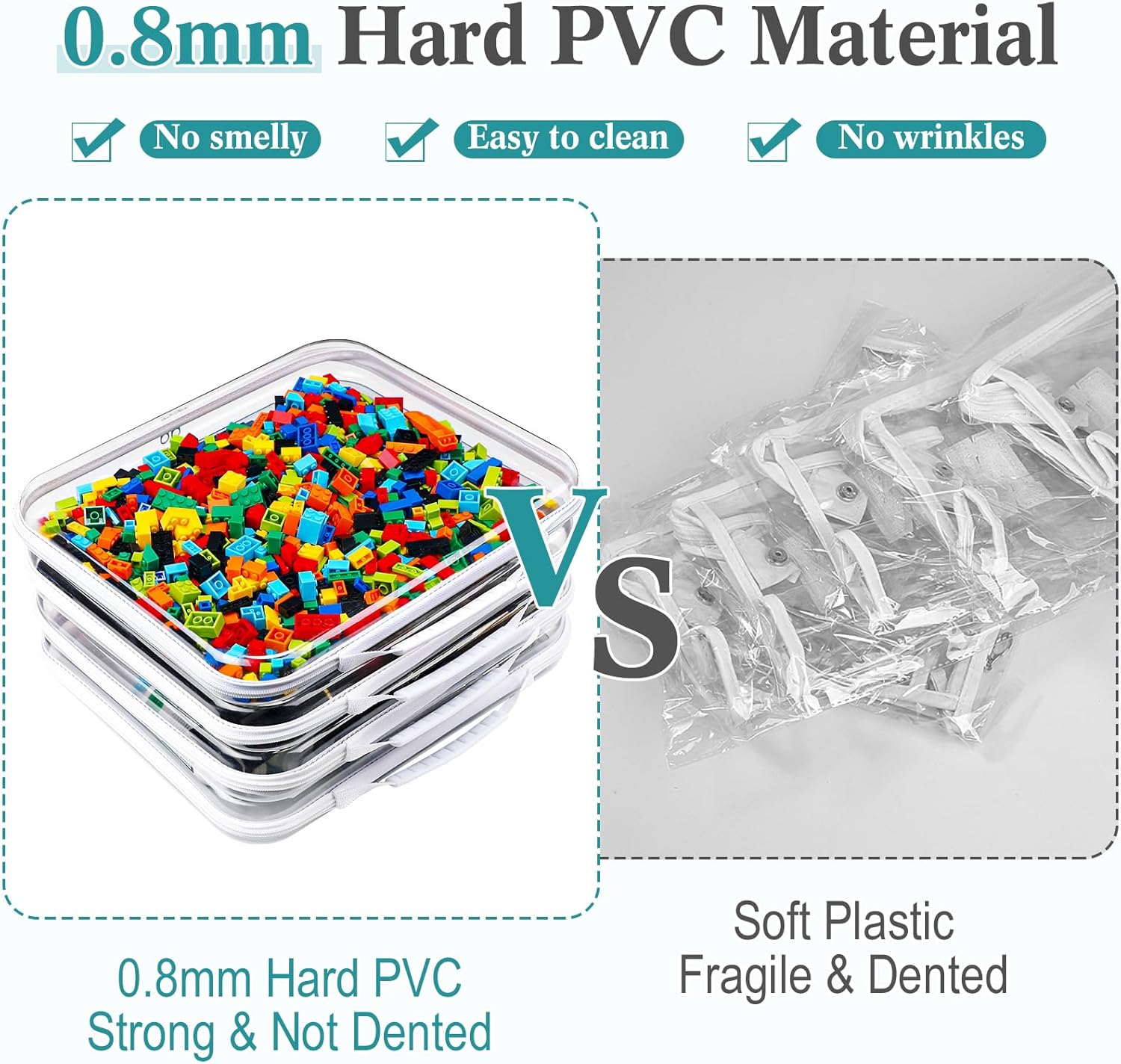 Sanwuta 4 Pcs Clear Hard Zipper Case with Handle Office Storage Cases Hard Plastic Pouches Transparent Bins for Toys, Snacks, Cosmetics, Building Blocks, Puzzles(13.8 x 11.8 x 2 Inches,White)