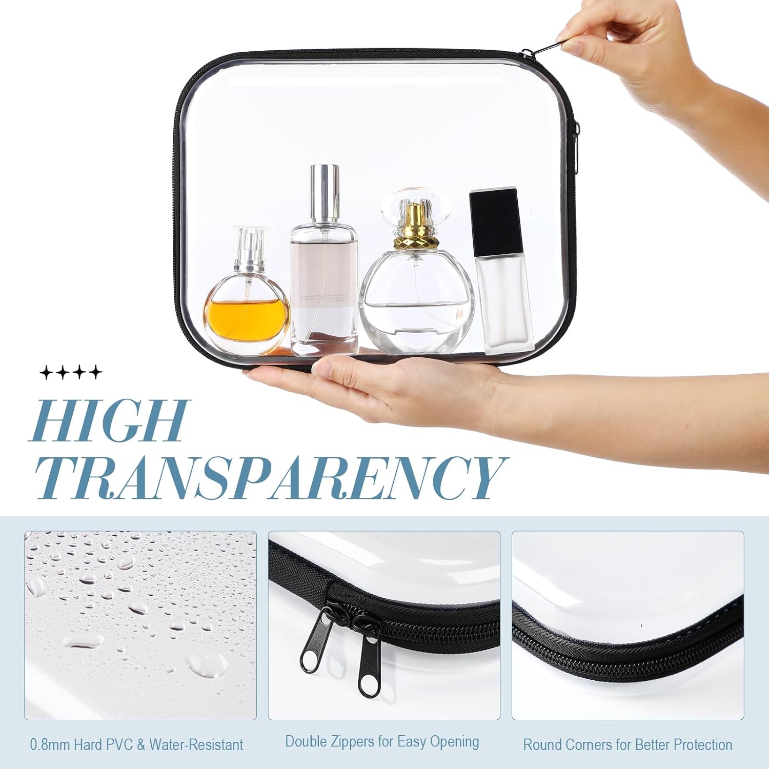 - Durable PVC Material: crafted from 0.8mm thick PVC material, these hard plastic zipper case are built to last; The durable construction ensures your belongings are protected from external elements, making them a reliable choice for both everyday use and travel; Featuring a smooth double zipper design, these cases open and close effortlessly