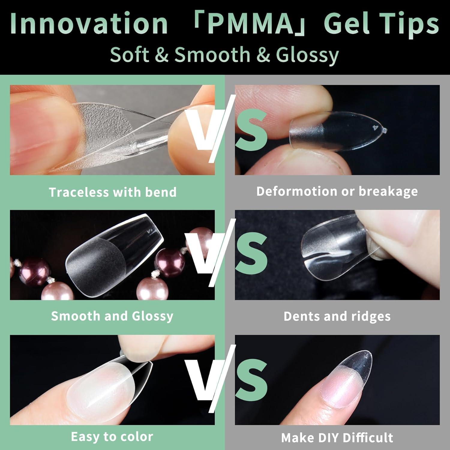 - No Trace Soft Gel Nail Tips: Crafted from gelly soft gel material, these fake nails leave no trace even when bent. Their bright clarity allows for easy pressing, trimming, and painting, helping you create your ideal nail shape effortlessly. Perfect for a true DIY manicure.