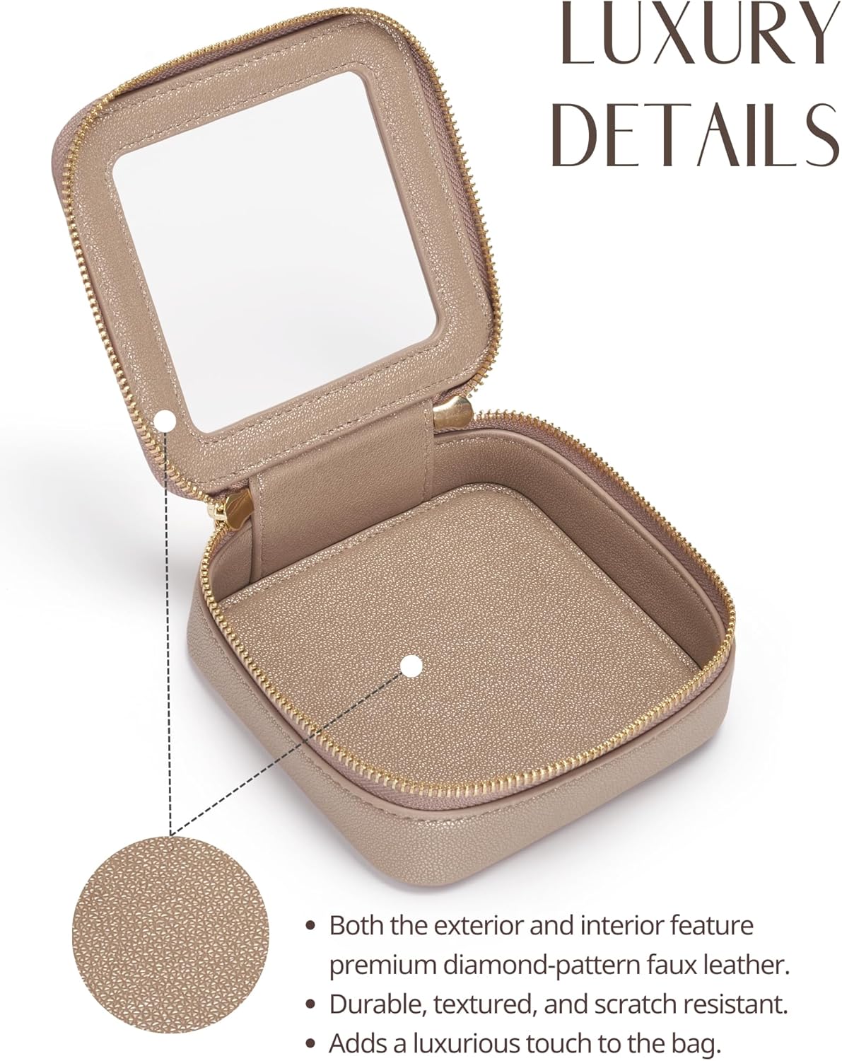 - [Mini but Mighty] – The white mini makeup bag measures 5'' x 4.7'' x 2'' (12.7cm x 12cm x 5cm), perfect for holding daily mini essentials including lip balms, hair ties, jewelry, Air Pods, charging cords and medications. Slip it into your purse, backpack, everyday tote or travelling bag for easy access to your must-have items.