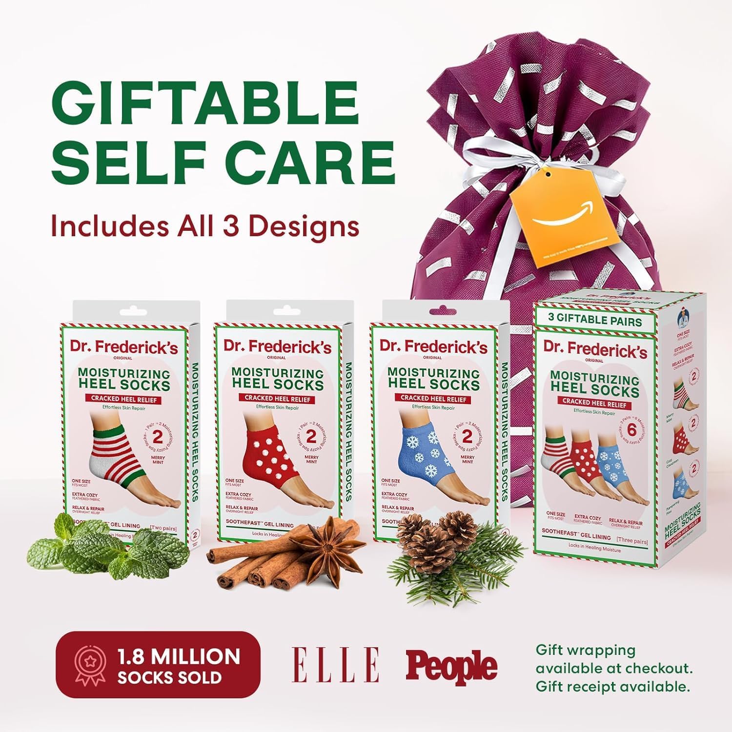 Dr. Frederick's Original Moisturizing Fuzzy Heel Socks - 3 Pairs - Cozy Gel-Lined Sleep Socks for Women & Men - Soothing Dry, Cracked Feet - Cracked Heel Repair (Holiday Special Edition)