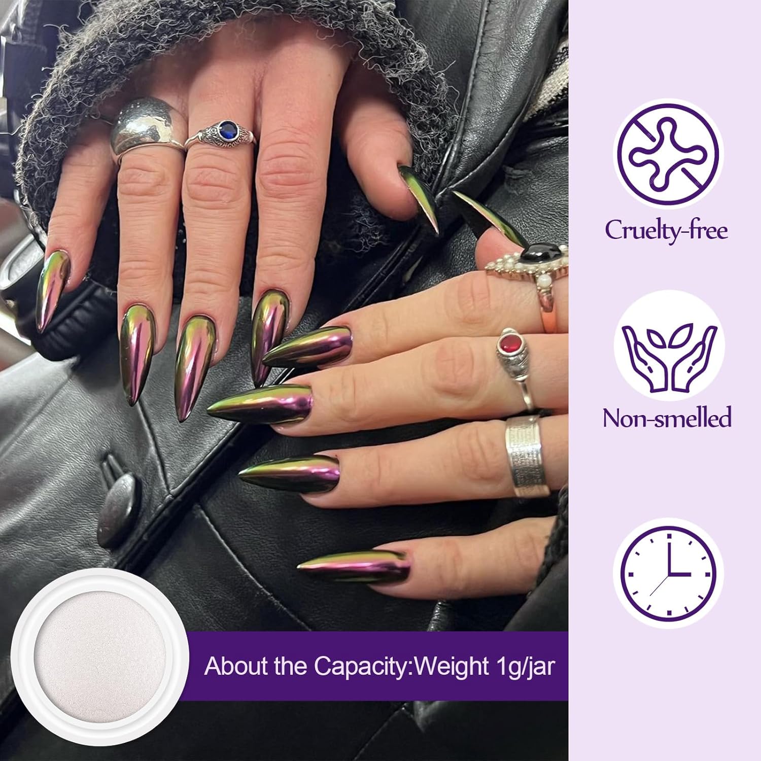 - 【QUALITY AND QUANTITY】 :The jar has 1 gram of powder, instead of just a little bit per jar. Artdone chrome nail powder has very good shining mirror effect, it can make different effects with different background colors. And they are great to go over light gel polishes without it changing the color too much