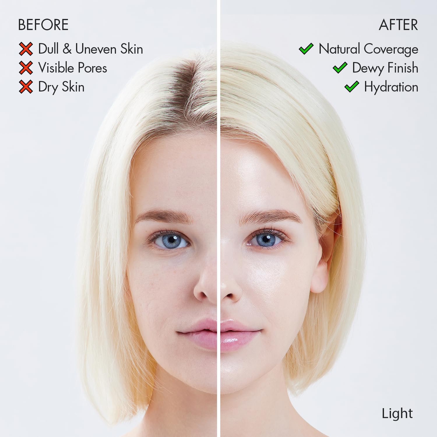 - DEWY & GLOW FINISH : Infused with 71% essence for not sticky or greasy feeling like many other full coverage makeups. Formulated to improve the appearance of your skin texture and creating a smooth, luminous, and moist skin.