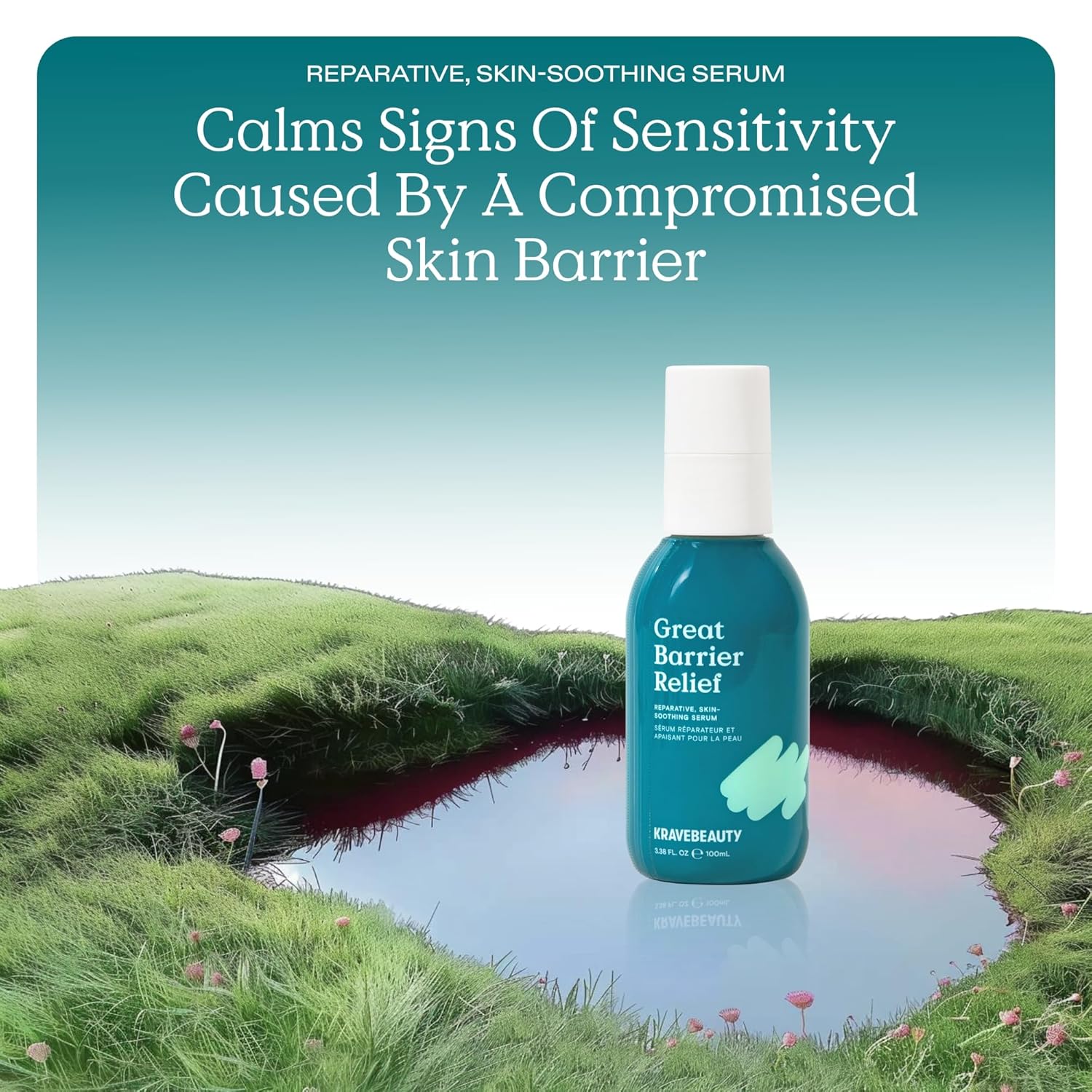 KraveBeauty Jumbo Great Barrier Relief, Soothing Skin Barrier Repair Serum, Contains Tamanu Oil to Soothe and Calm Redness, For All Skin Types, Vegan & Cruelty Free, 3.38 fl oz
