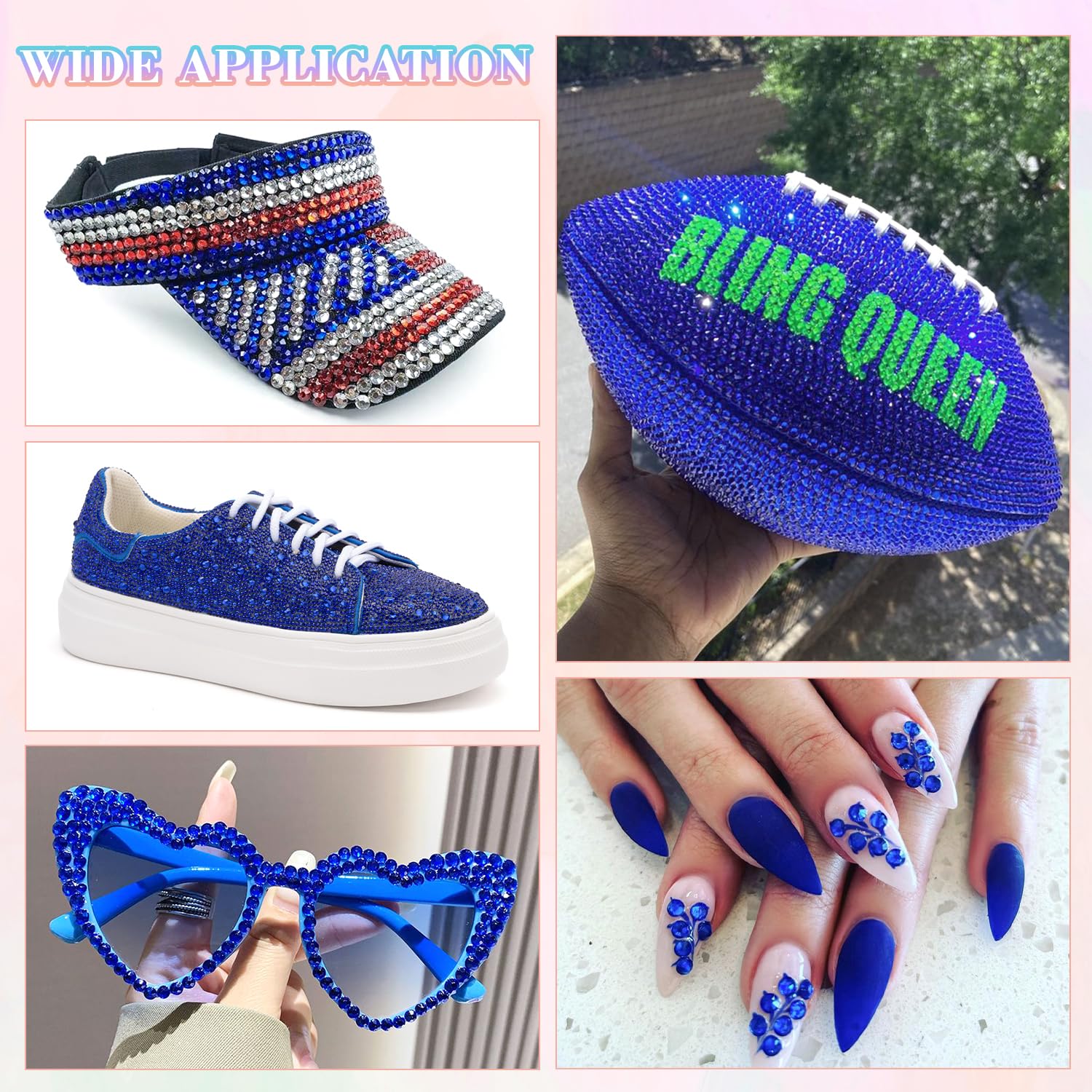 - PACKAGE CONTENT -- Include 1 box with 24 grids, featuring a variety of sizes, approx. 25000 pcs bling-out resin rhinestones (Royal Blue). 1 tweezers and 1 pickup pen are included for easily picking up of rhinestones